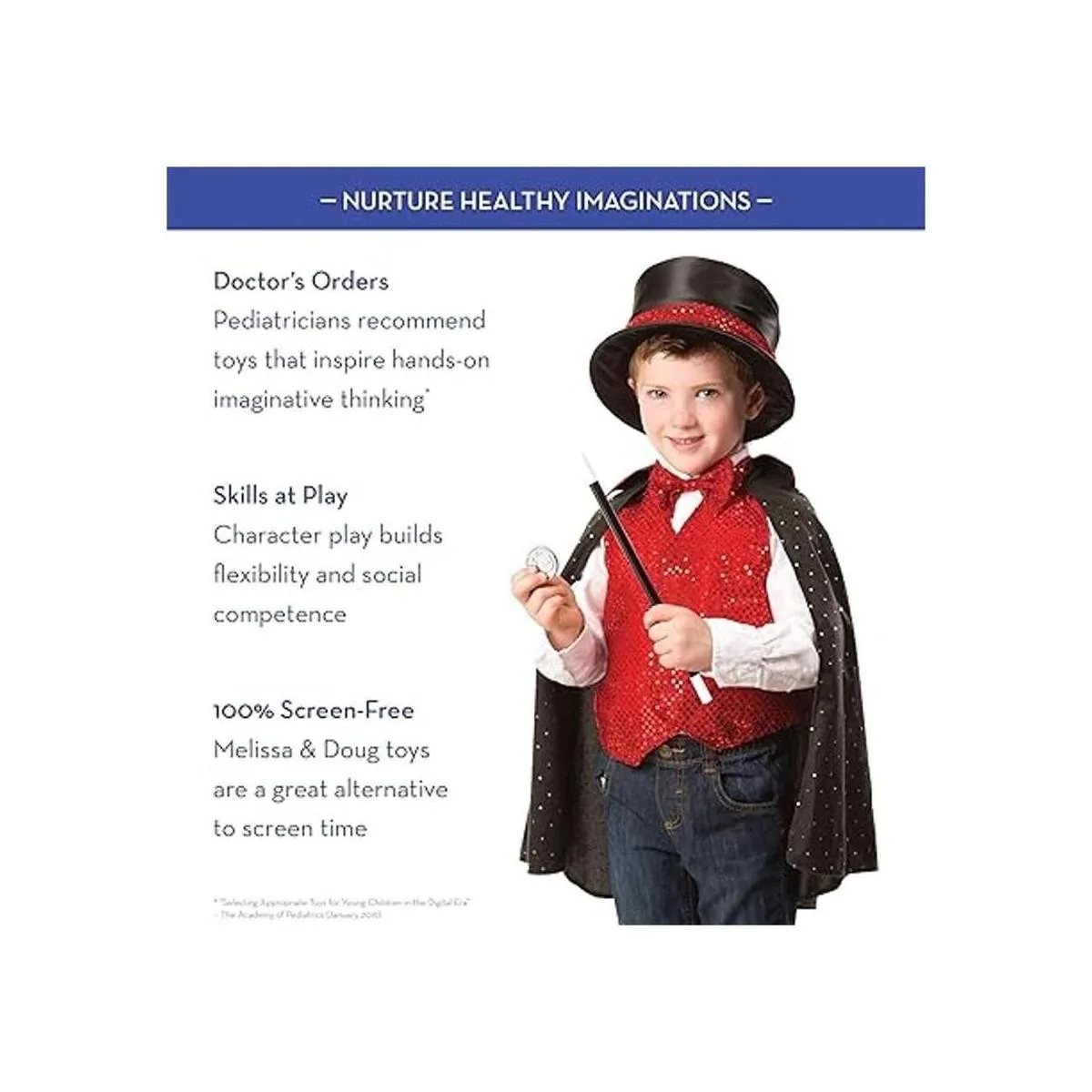 Melissa Doug Juego de disfraz de juego de rol de mago incluye sombrero, capa, varita, trucos de magia, embalaje sin frustraciones