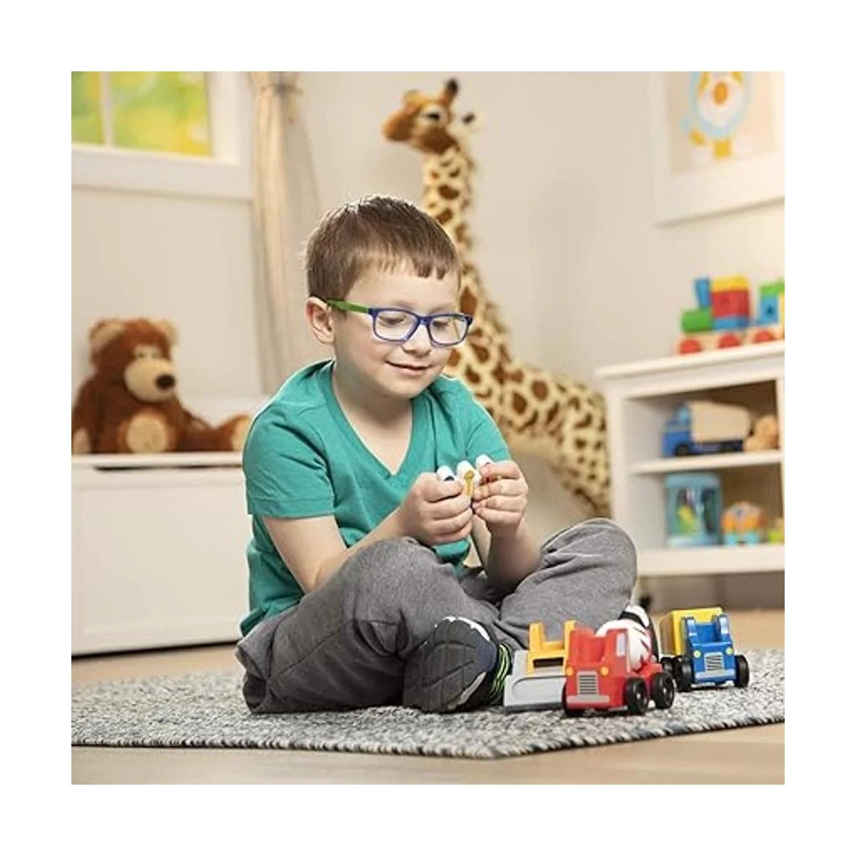 Melissa Doug Juego de juego de madera para vehículos de construcción 8 piezas