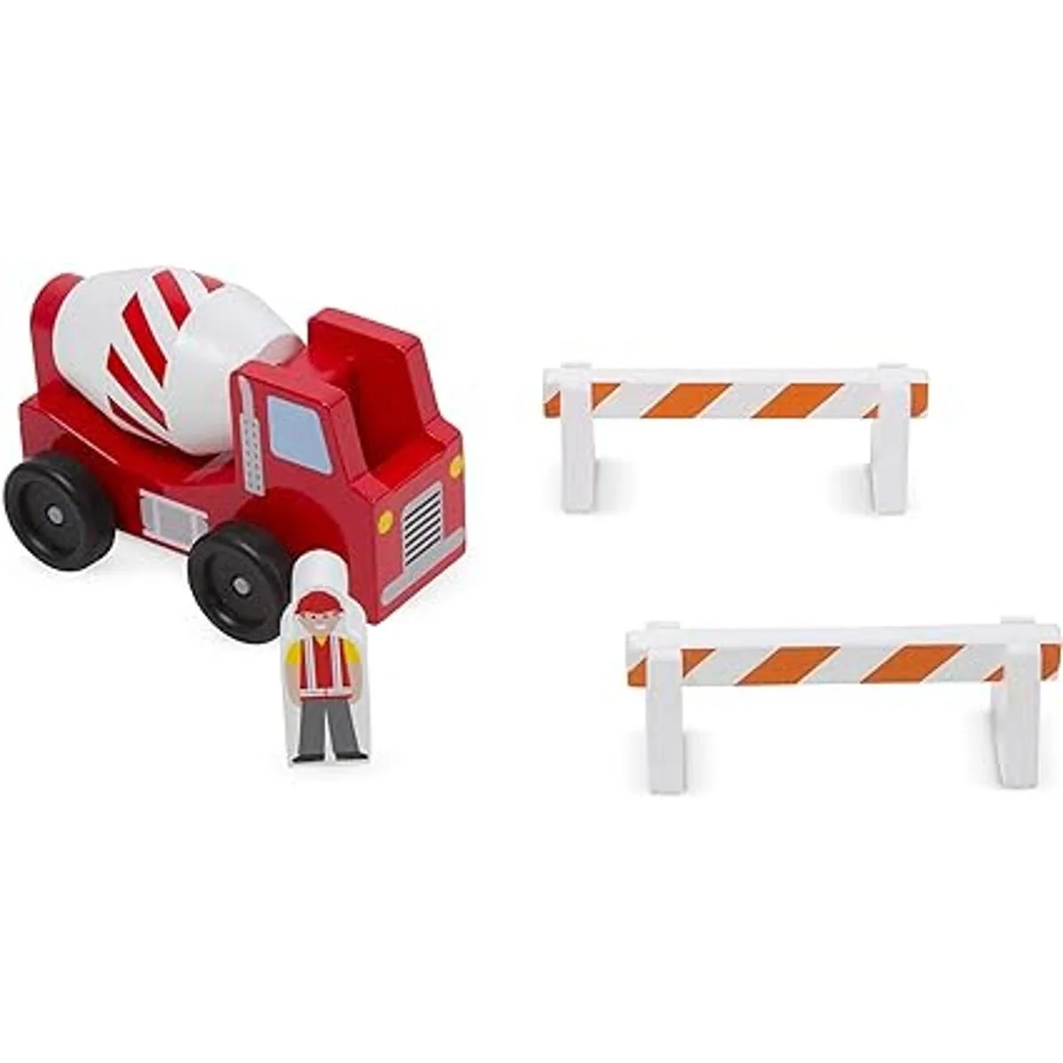 Incluye un camión volquete, mezclador de cemento, cargador frontal y 4 figuras de juego