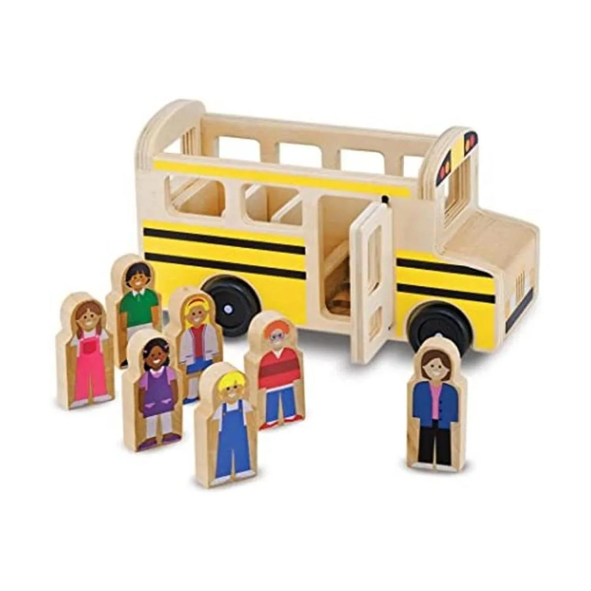 Melissa Doug Juego de madera de autobús escolar con 7 figuras de juego