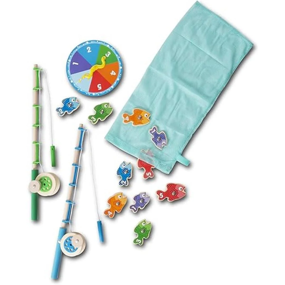 Melissa Doug Juego de pesca de madera de captura y cuenta con 2 varillas magnéticas