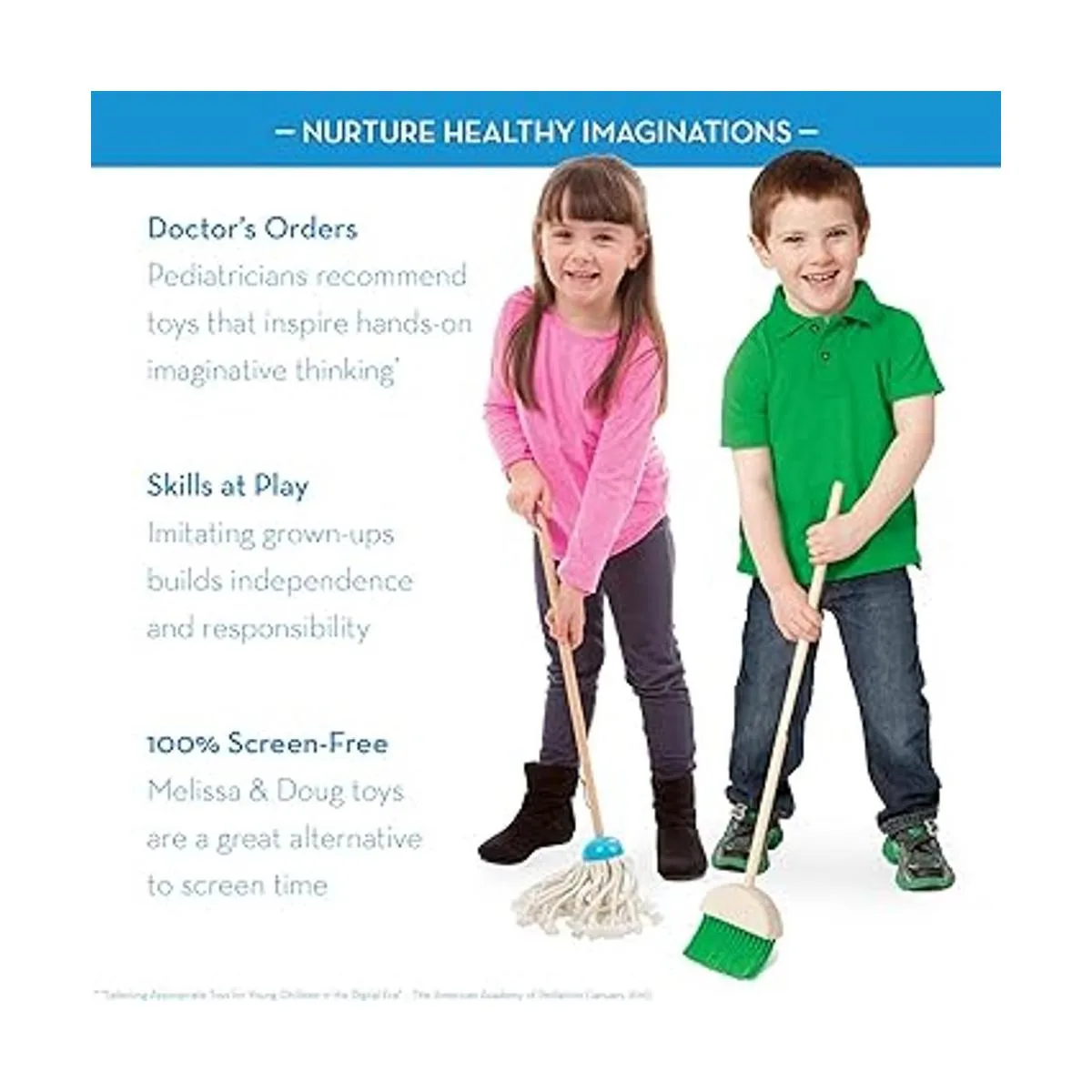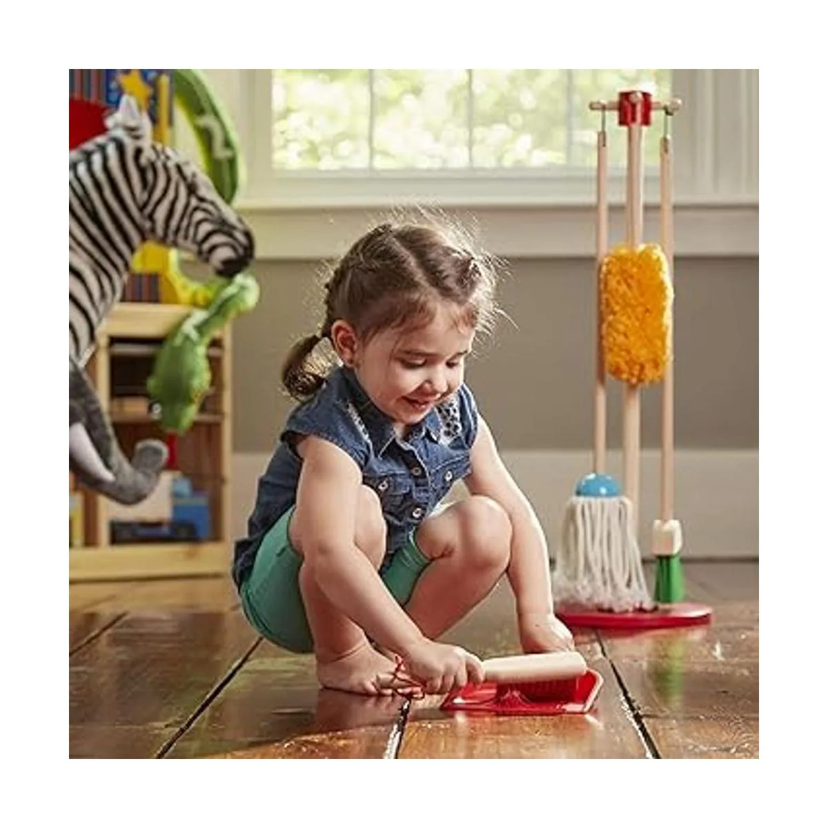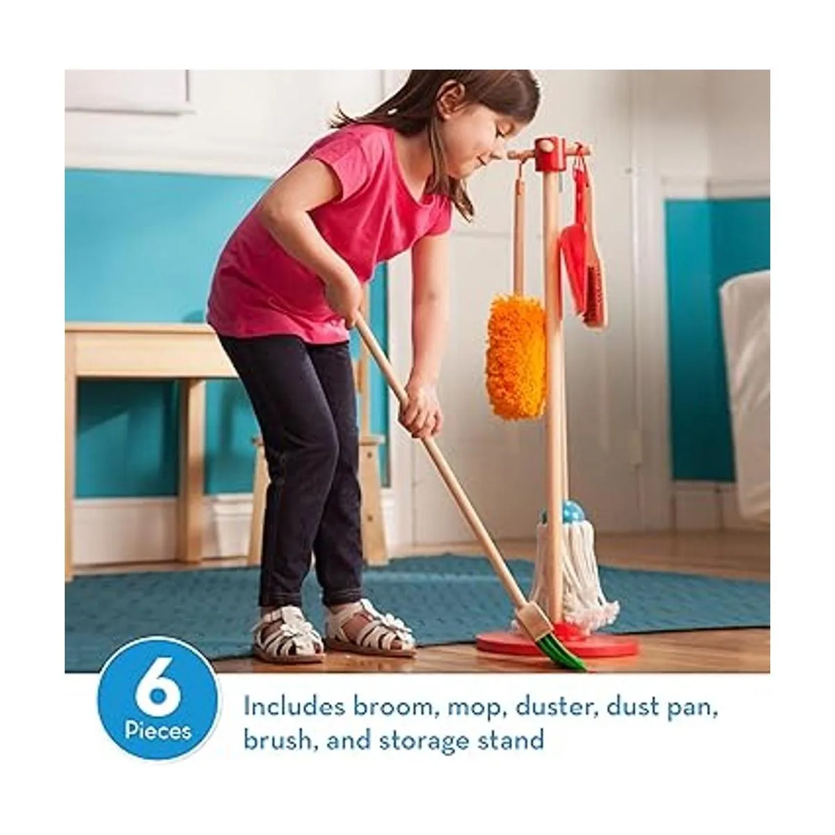 Melissa Doug Lets Play House Dust Sweep Juego de 6 piezas de juego de simulación Juego de limpieza de juguetes para niños pequeños, juego de limpieza del hogar de simulación, juego de escoba y trapeador para niños a partir de 3 años