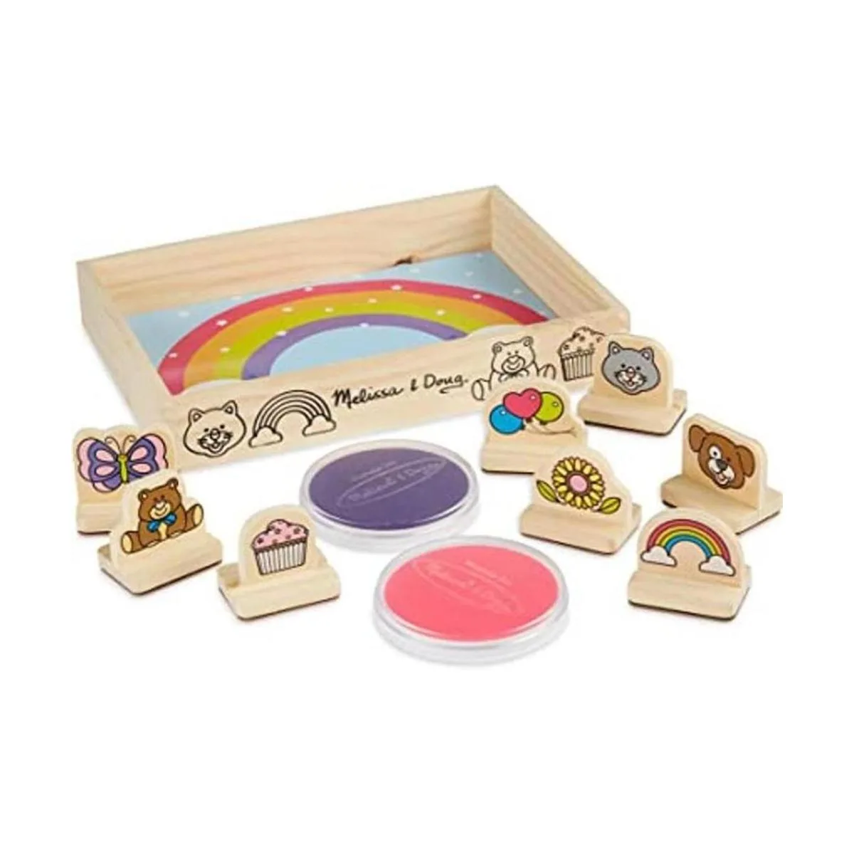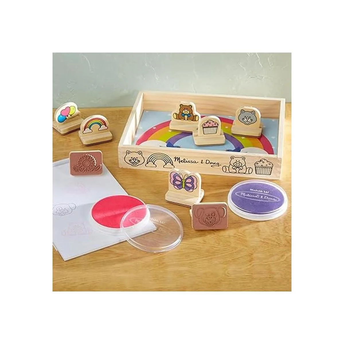 Melissa Doug My First Juego de sellos de madera favoritos 8 sellos con asas, 2 almohadillas de tinta lavables