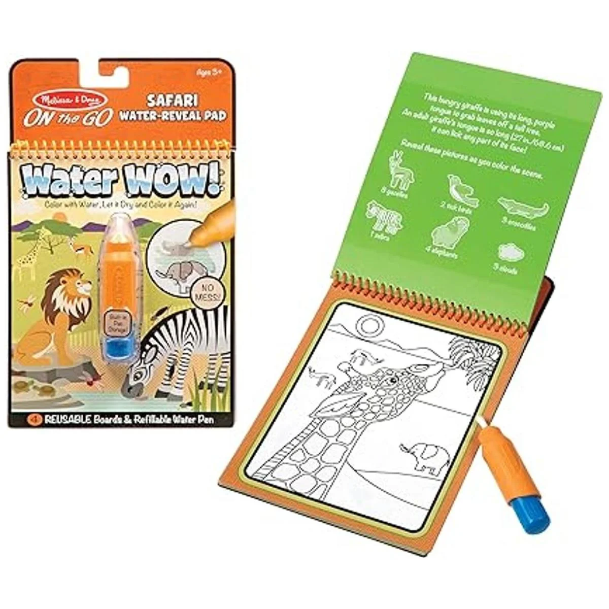 CHUNKYSIZED PEN: This Melissa Doug safari activity book comes with a chunkysized water pen that allows easy filling and is designed for smaller hands to easily grasp. The compact, spiralbound format is great for travel.