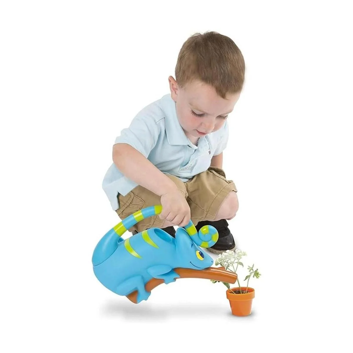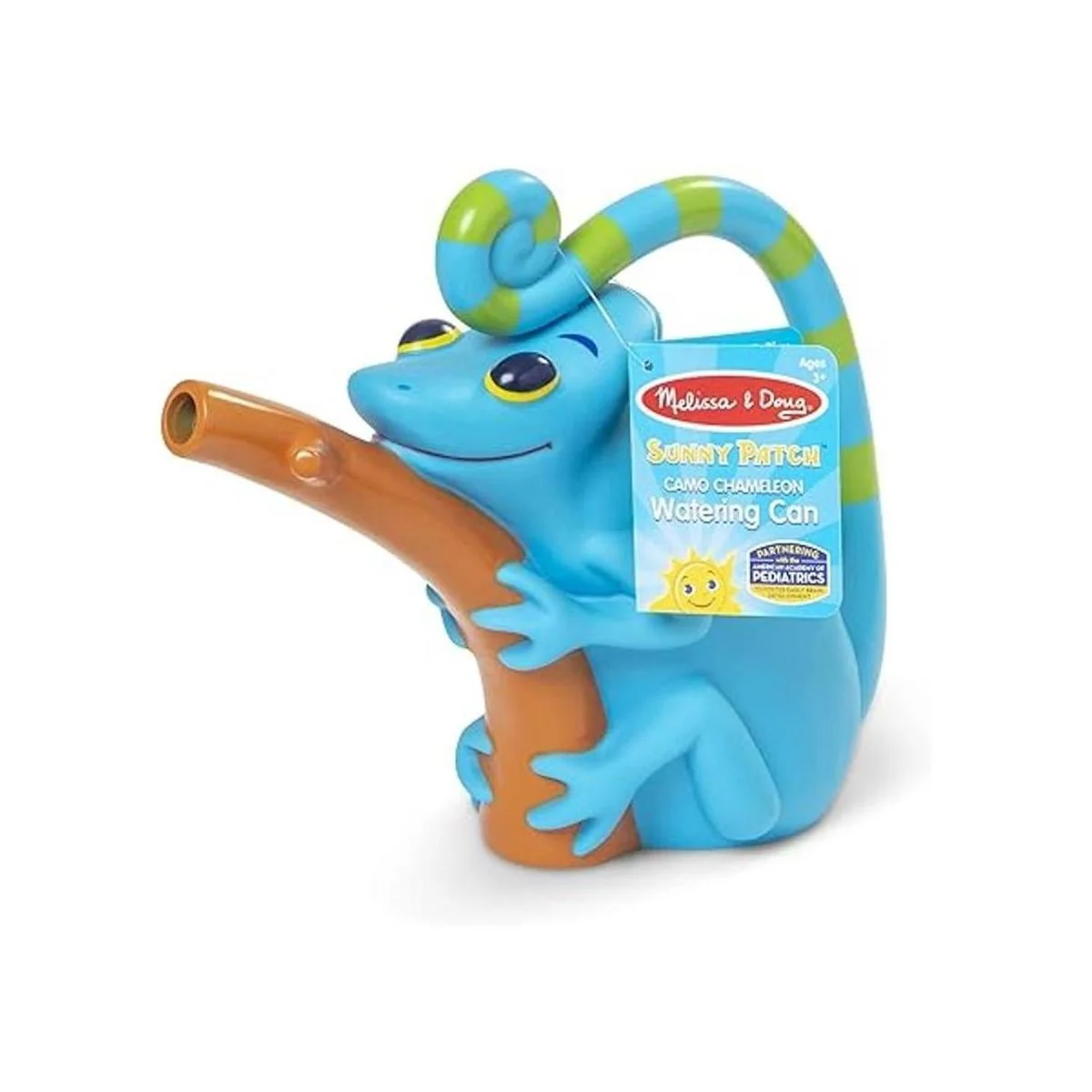 Melissa Doug Sunny Patch Regadera camaleón de camuflaje con mango de cola y boquilla en forma de rama