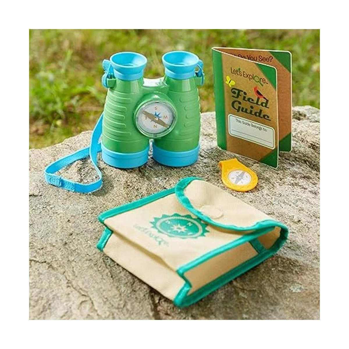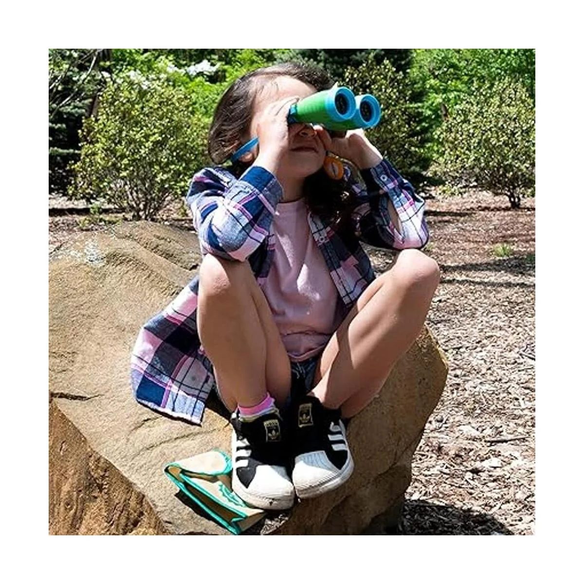 Incluye prismáticos de juego con piezas de ojo suaves, brújula integrada y correa ajustable con cierre autoadhesivo, práctica bolsa de almacenamiento, guía de campo, medallón coleccionable