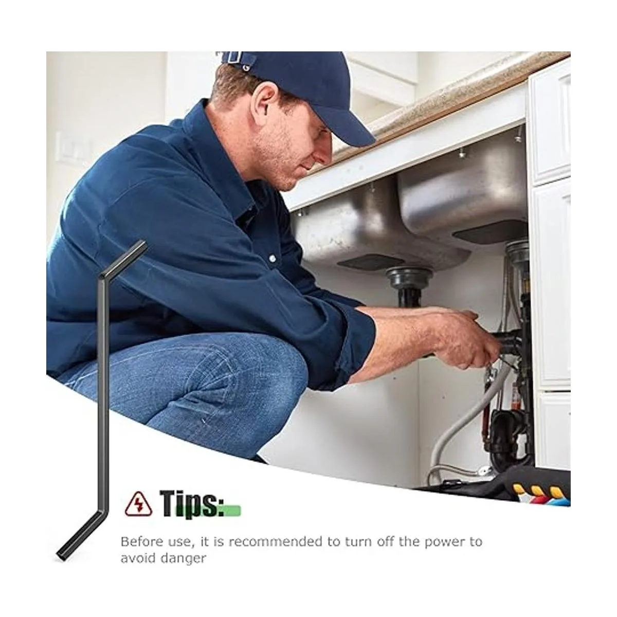 Fácil de instalar: simplemente inserta la llave en el agujero hexagonal en el centro de la parte inferior del triturador de basura, gira la llave hacia adelante y hacia atrás hasta que pueda girar libremente en ambas direcciones, y puedes reparar y liberar rápidamente la basura. Hecho en un minuto.