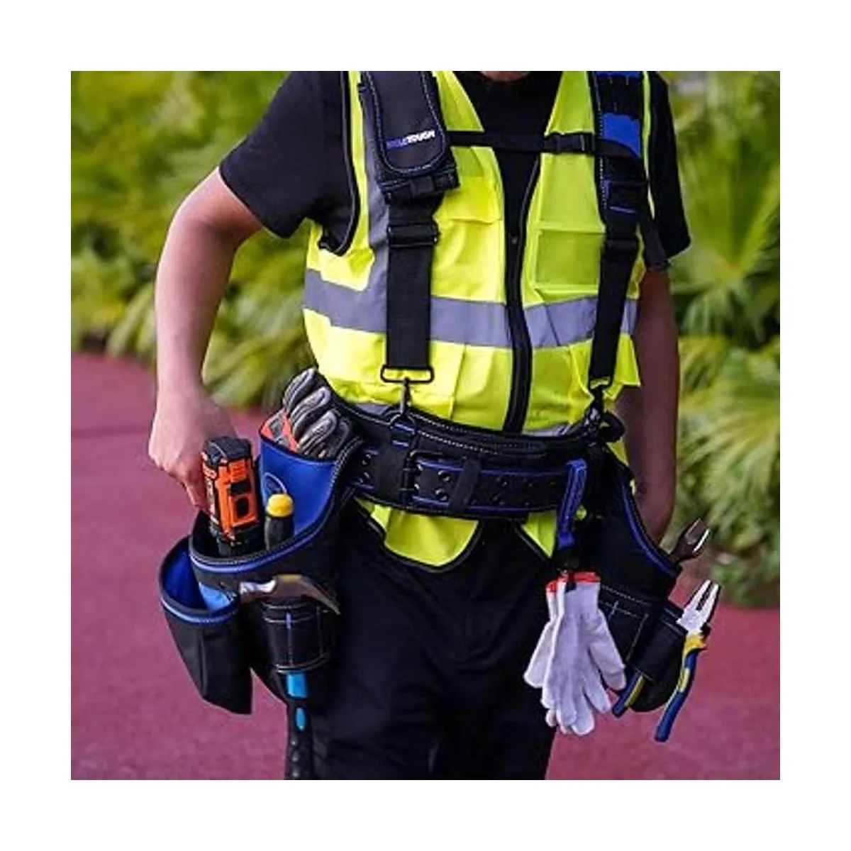 Excelente sistema: el sistema combinado de 5 piezas con cinturón de herramientas profesional es de tamaño totalmente ajustable, puede adaptarse a chicos grandes y tirantes con cómoda correa acolchada para el hombro, 2 organizadores de herramientas de transporte extraíbles con asa, permite una gran separación para todo tipo de herramientas, soporte para martillo, soporte para teléfono, este puede contener todo lo que necesitas para casi cualquier trabajo.