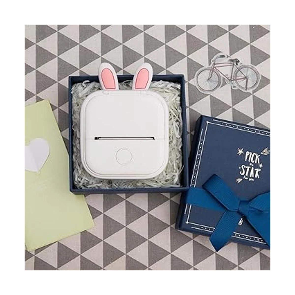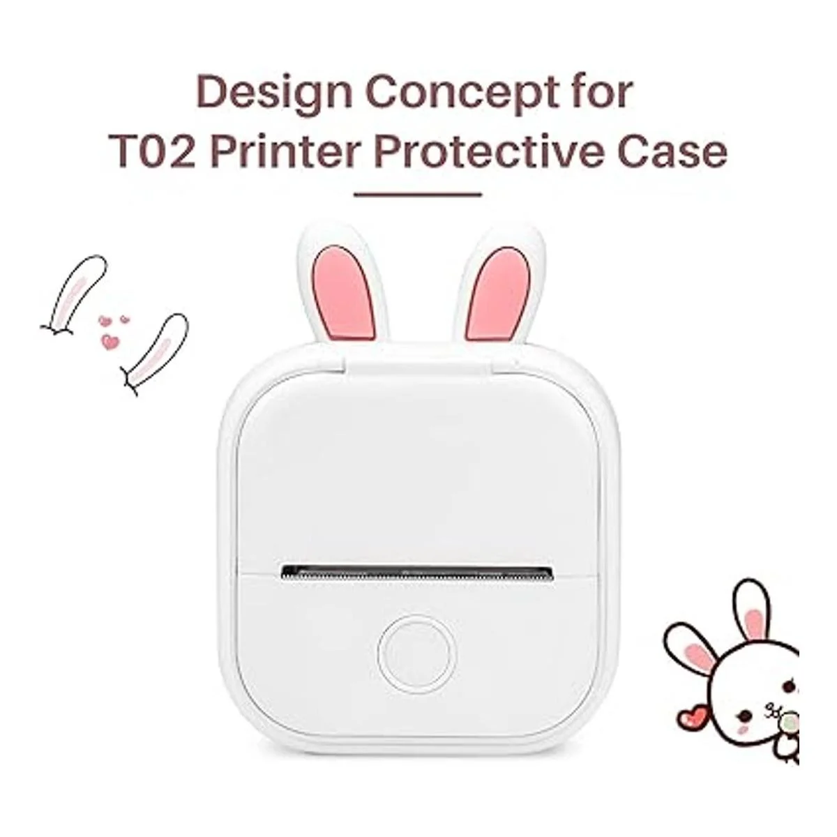 Memoking T02 Funda protectora con forma de orejas de conejo, silicona suave, sin BPA, lindo diseño, compatible con T02 Mini Bluetooth impresora de bolsillo portátil inalámbrica, color blanco