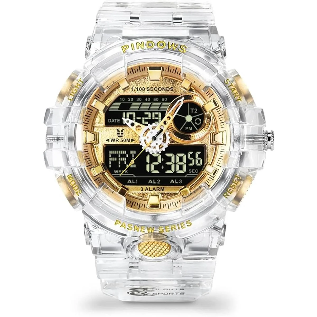 Alto brillo y cómodo El diseño de retroiluminación de alto brillo y la ventana de la esfera adoptan una superficie de espejo acrílico con alta transparencia, hacen que la apariencia sea más fresca y los clientes tengan una experiencia de lectura clara. La funda y la correa están hechas de goma y resina de alta calidad, cómodas de llevar.