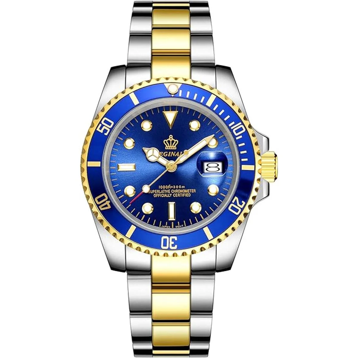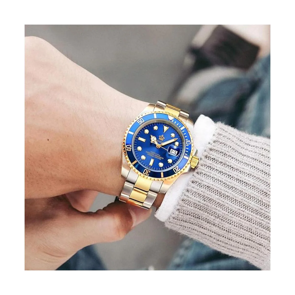 Mens Luxury Watches Rotatable Bezel Sapphire Glass Luminous Quartz Silver Gold Two Tone Stainless Steel Watch