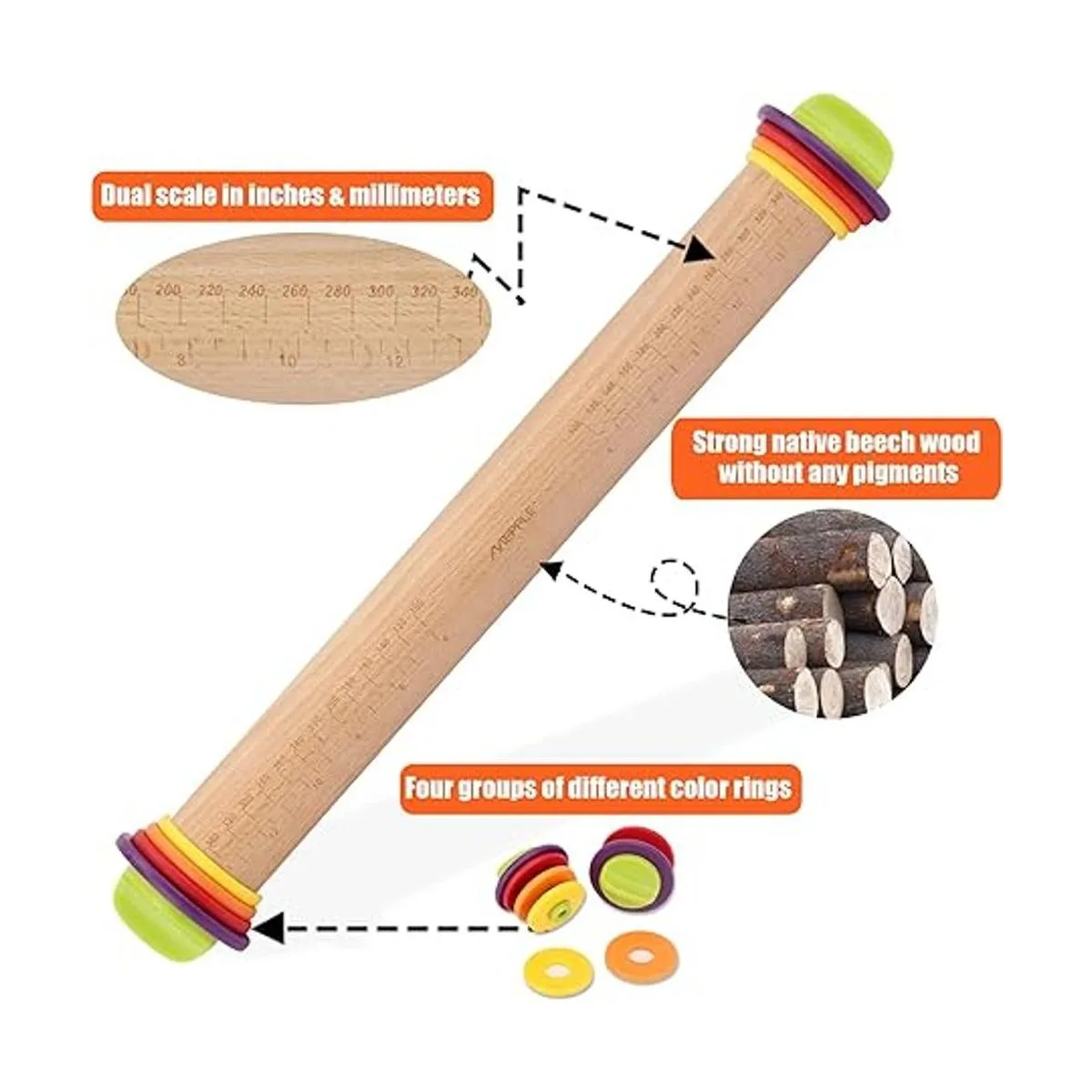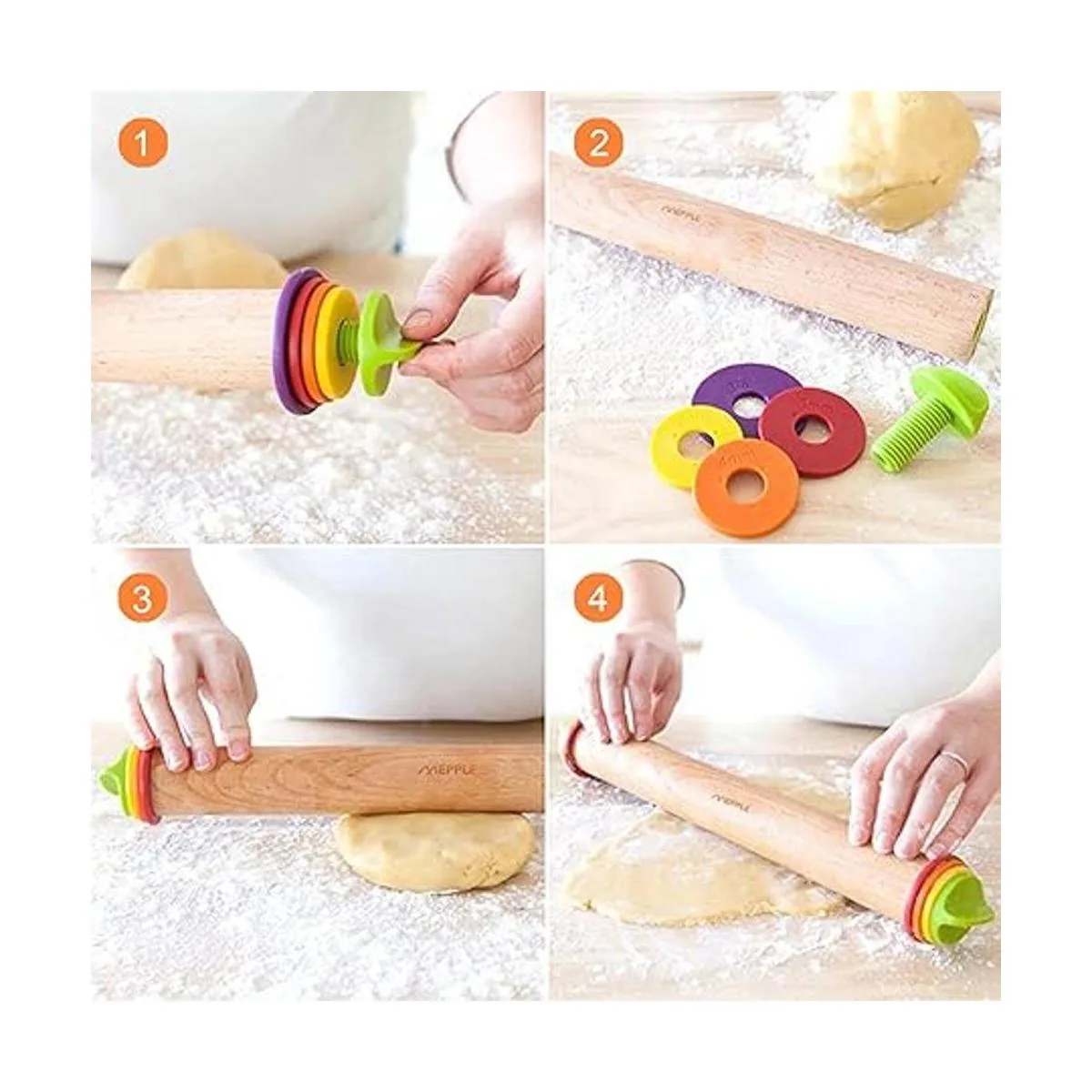 Suministros de decoración de galletas: el rodillo de madera ajustable Mepple es una herramienta esencial de cocina. Es perfecto para hacer masa de pizza, cortezas de pasteles, pan y masa de galletas de grosor y suavidad uniformes.