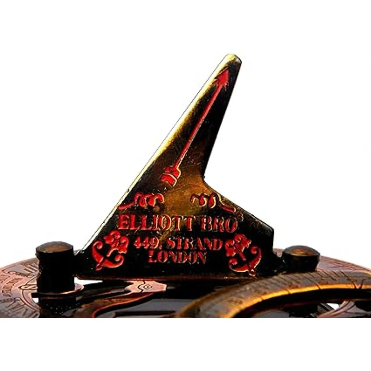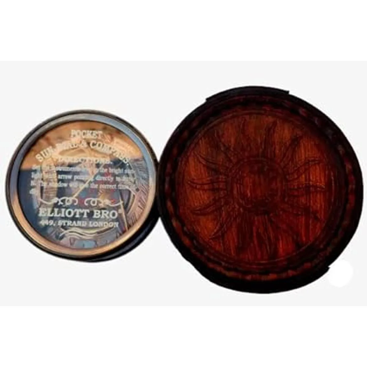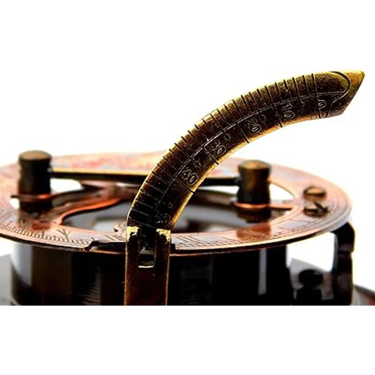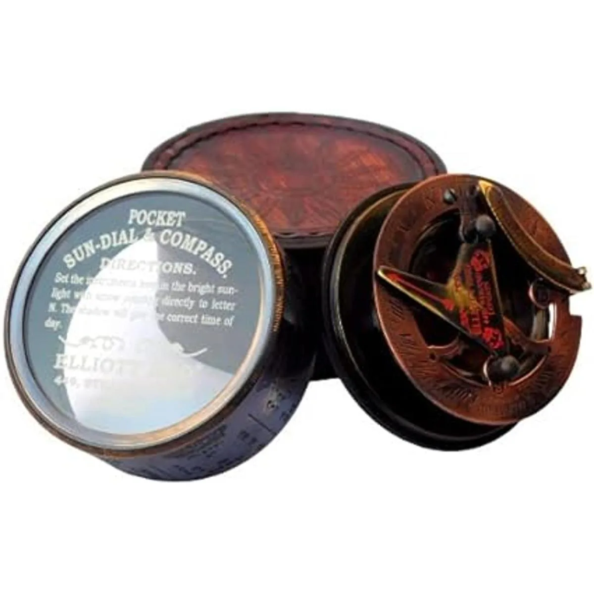 MERIDIAN NAUTICALS Brújula de latón con reloj solar de tambor con caja de cuero estampada. Antigedades náuticas marítimas reproducción náutica
