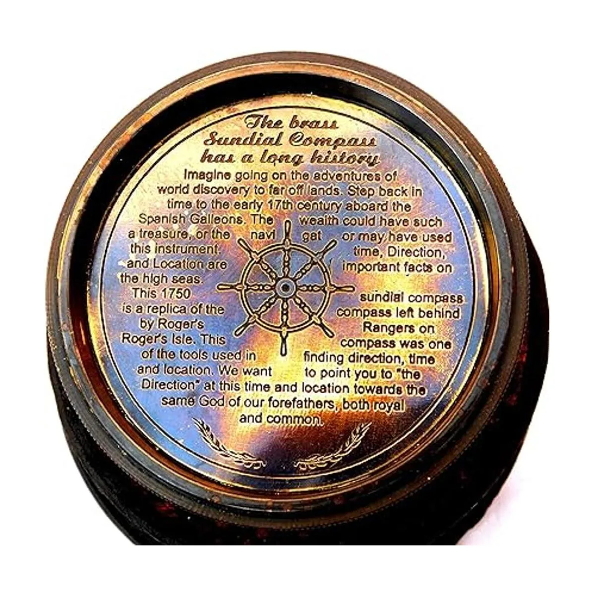 Brújula totalmente funcional hecha de latón macizo a lo largo de la funda de piel pura.