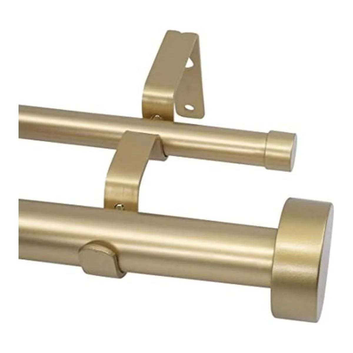 MERIVILLE Barra de cortina de doble ventana de 1 pulgada de diámetro, remate de tapa de extremo Vico 28 a 48 pulgadas, oro real con acabado dorado