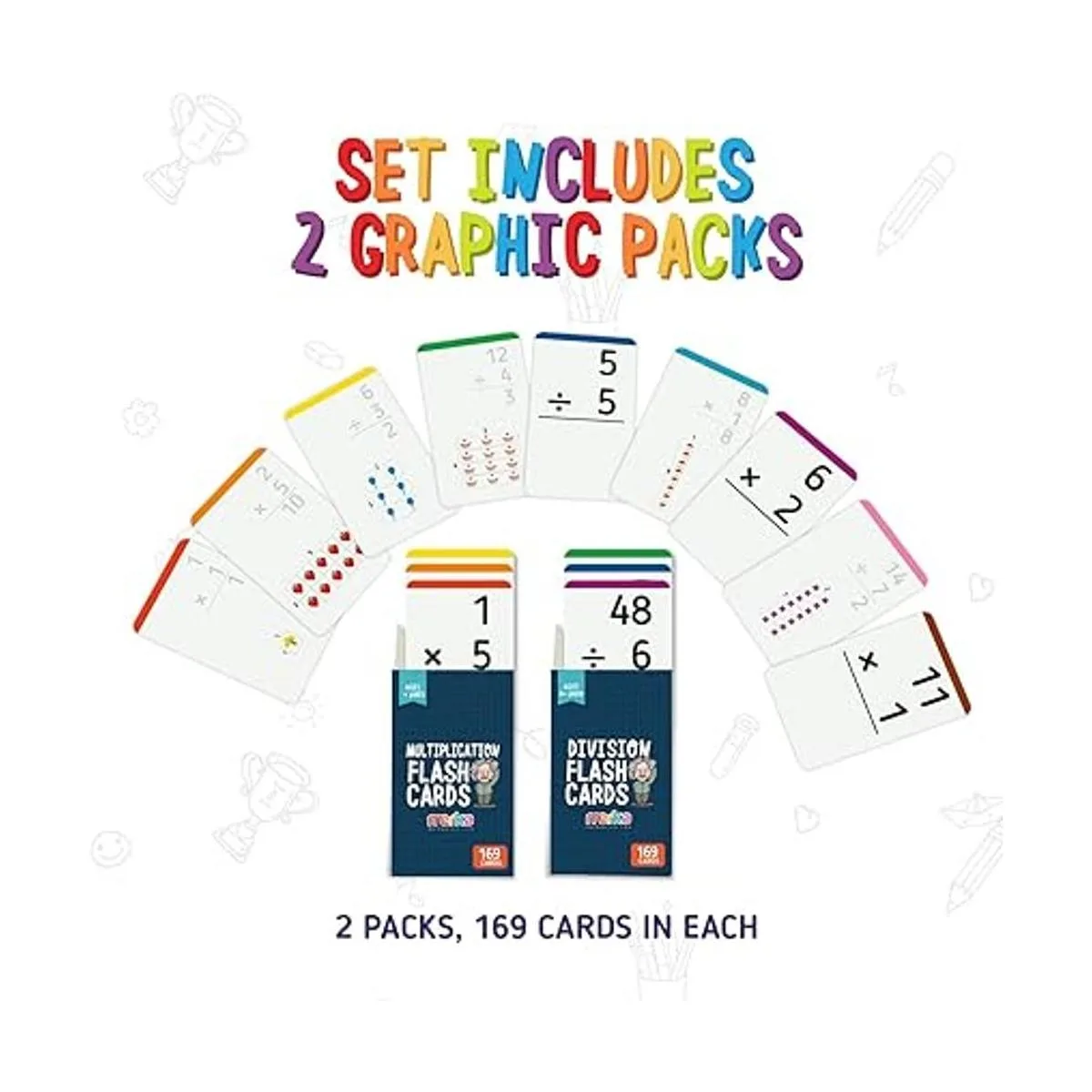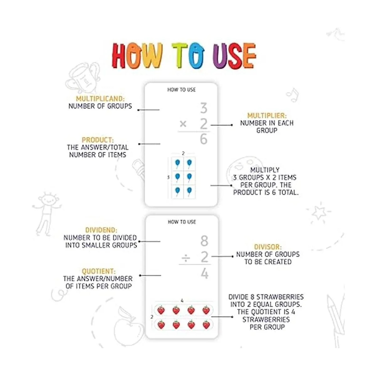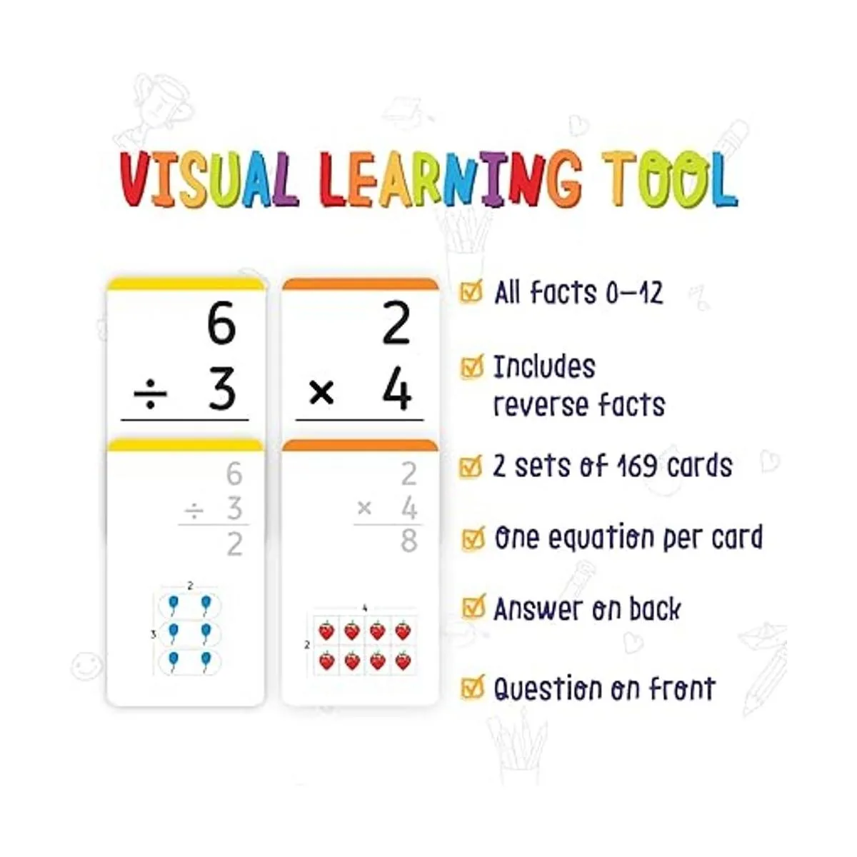 Paquete combinado: este juego incluye el juego de multiplicación y el juego de división, cada uno con 169 tarjetas 338 tarjetas en total. Con solo 2.4 x 4.3 pulgadas de tamaño, estas tarjetas de cartulina son perfectas para manos pequeñas