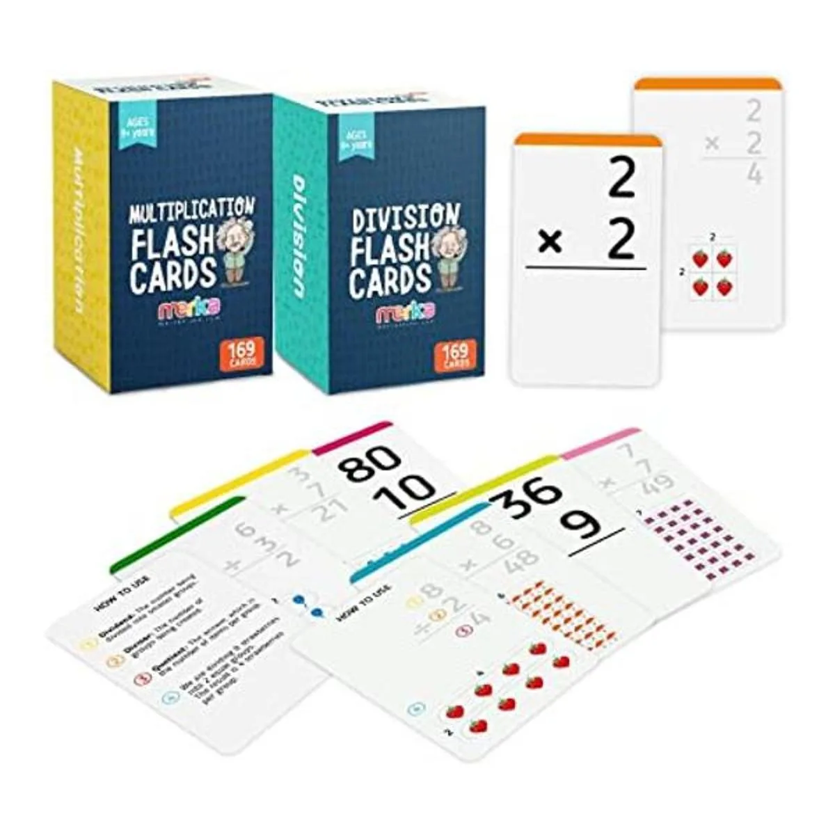 merka Tarjetas flash de multiplicación y tarjetas flash de división; tarjetas flash de matemáticas para estudiar multiplicación y división; tarjetas para 2 grado, 3 grado y superior; 2 juegos con 169 tarjetas cada una