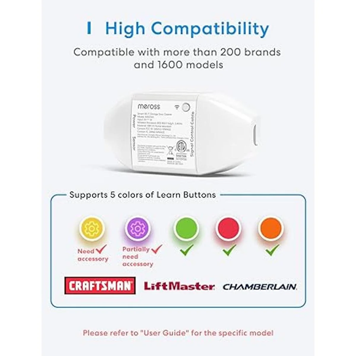 meross Abridor de puerta de garaje inteligente WiFi, control de aplicación, compatible con Alexa, Google Assistant y SmartThings, no necesita concentrador