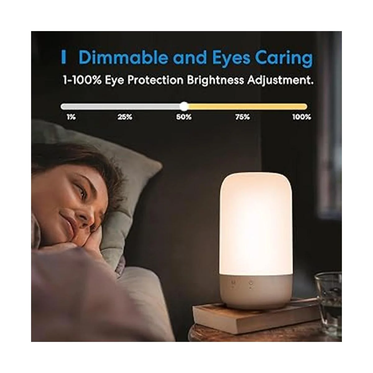 Control táctil: botones mejorados: control táctil en la parte superior de la lámpara inteligente de mesita de noche para iluminar o apagar, cambiar de color, ajustar el brillo y restablecer.