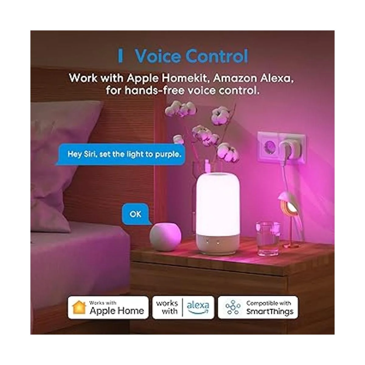 Control de voz: compatible con Apple HomeKit iOS 13.0 o posterior, Apple Watch, Siri, Alexa y Google Assistant. Tanto tú como los niños pueden controlar fácilmente la lámpara de mesa con comandos de voz. por ejemplo, Hey Siri, pon la lámpara en verde. Esta lámpara inteligente para niños es un gran regalo para tu hijo.