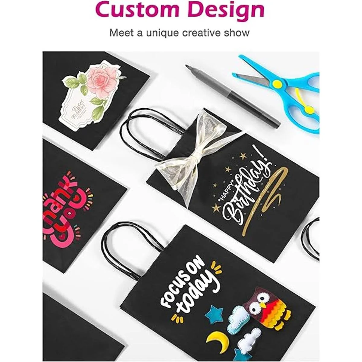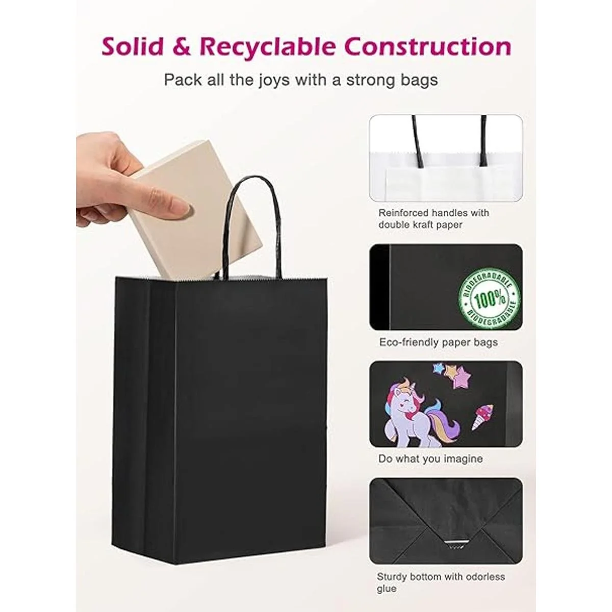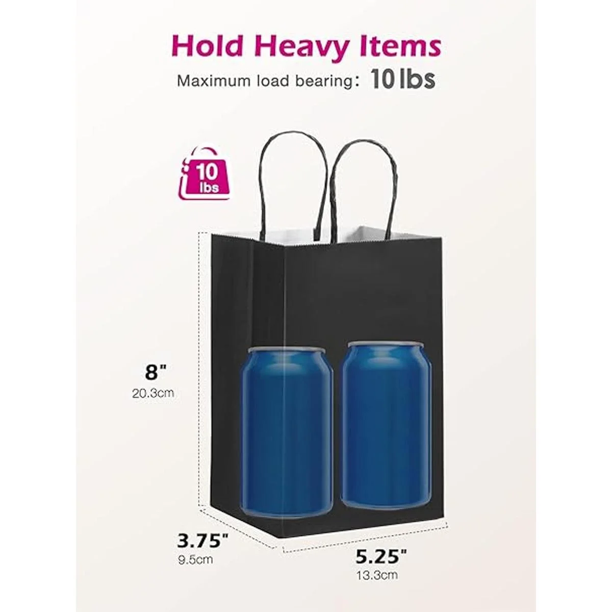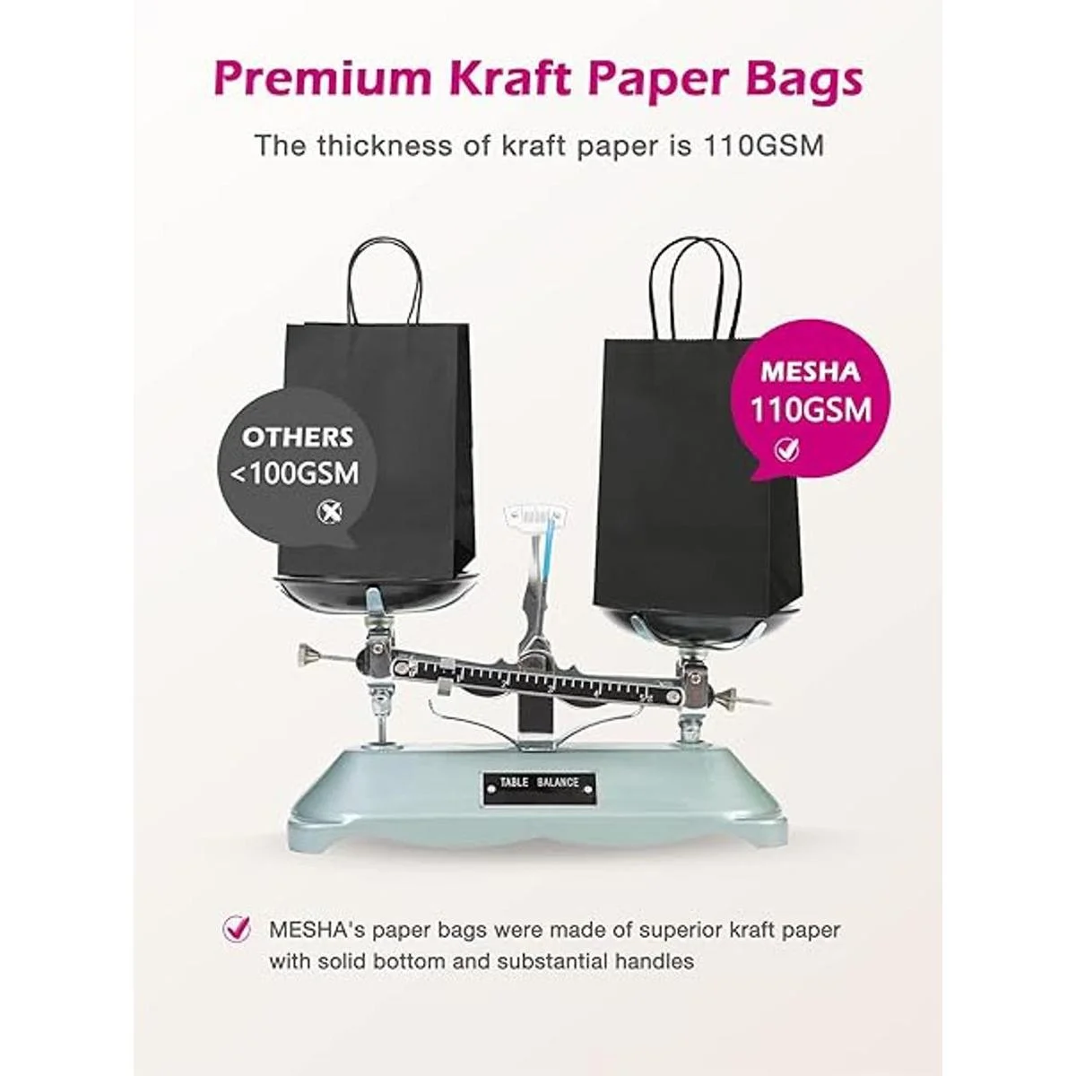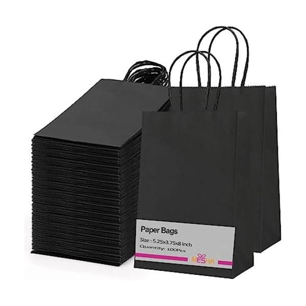 MESHA 100 bolsas de regalo negras de 5.25 x 3.75 x 8 pulgadas, bolsas de papel kraft de tamaño pequeño con asas para trabajo manual, compras, regalo, mercancía, venta al por menor, fiesta