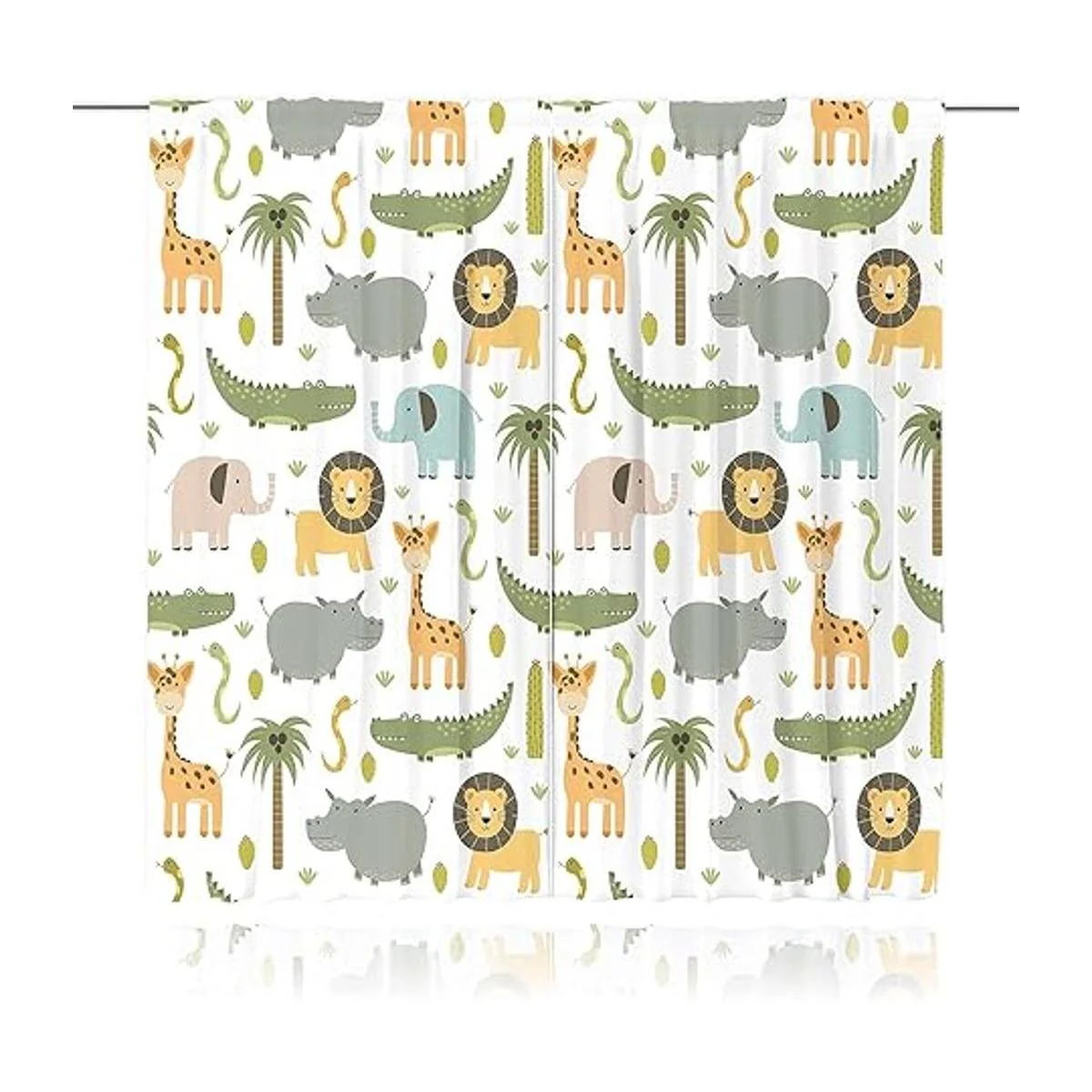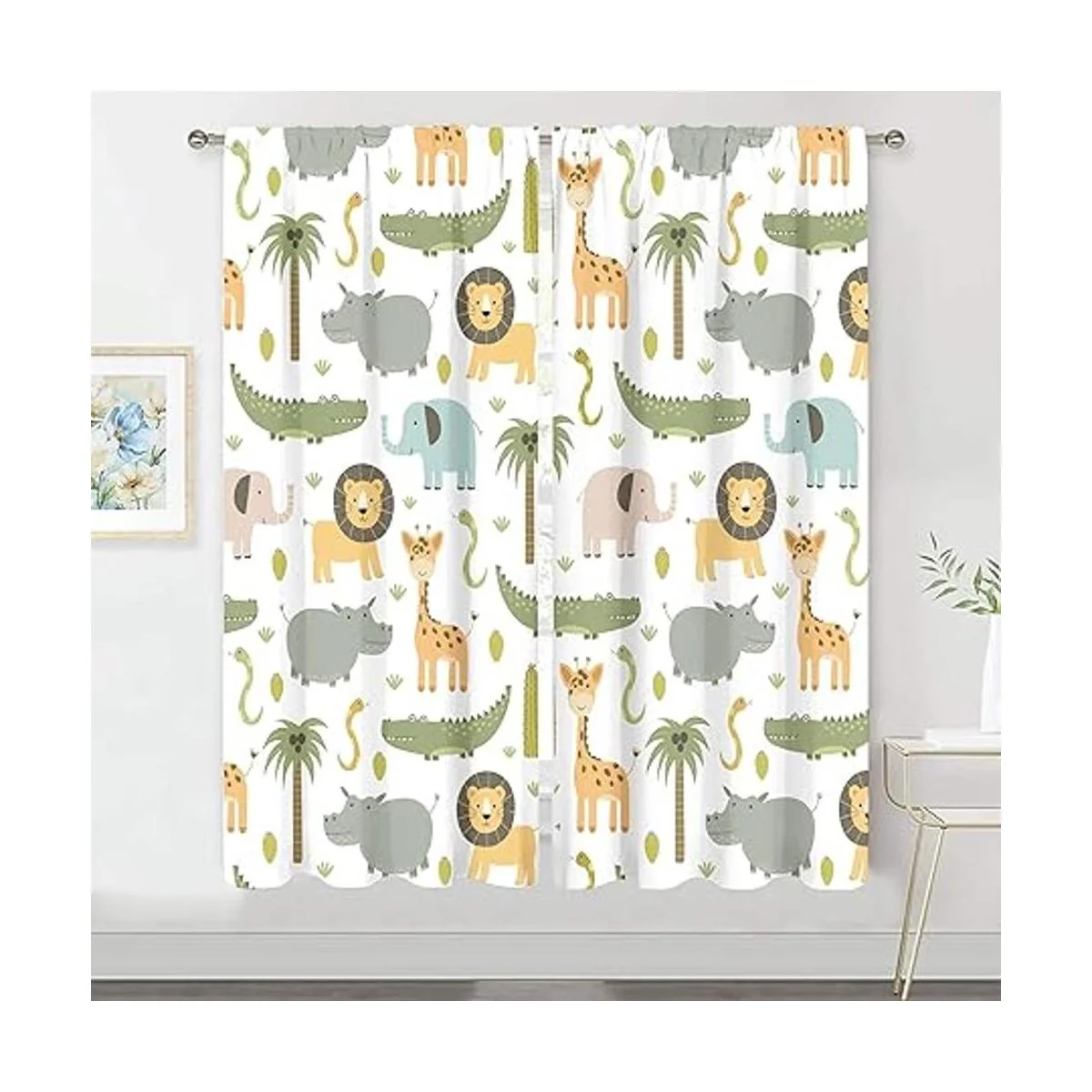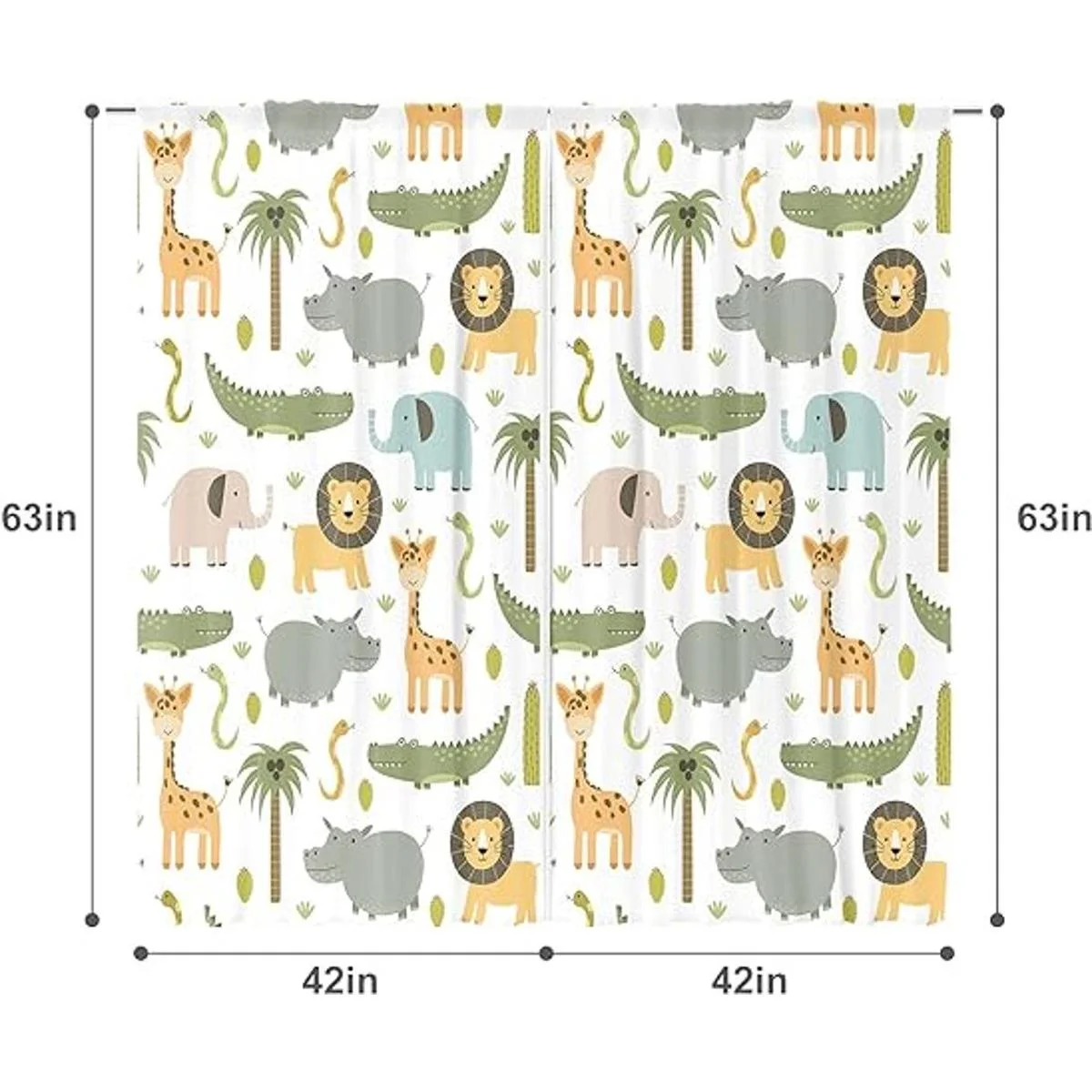 Meshelly Cortinas de animales de safari para guardería, 42 pulgadas de ancho x 63 pulgadas de alto, bolsillo para barra, para bebé, niños, bosque, selva, bosque, león, elefante, cortinas para sala de estar, dormitorio, cortinas de ventana de tela, 2 paneles