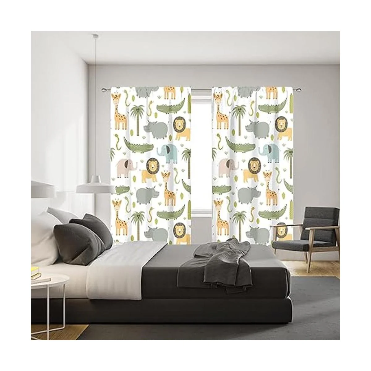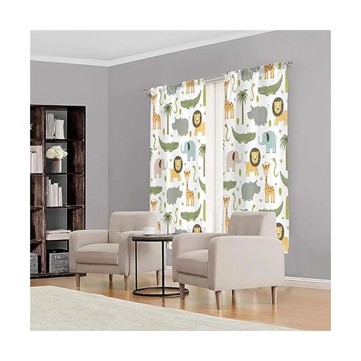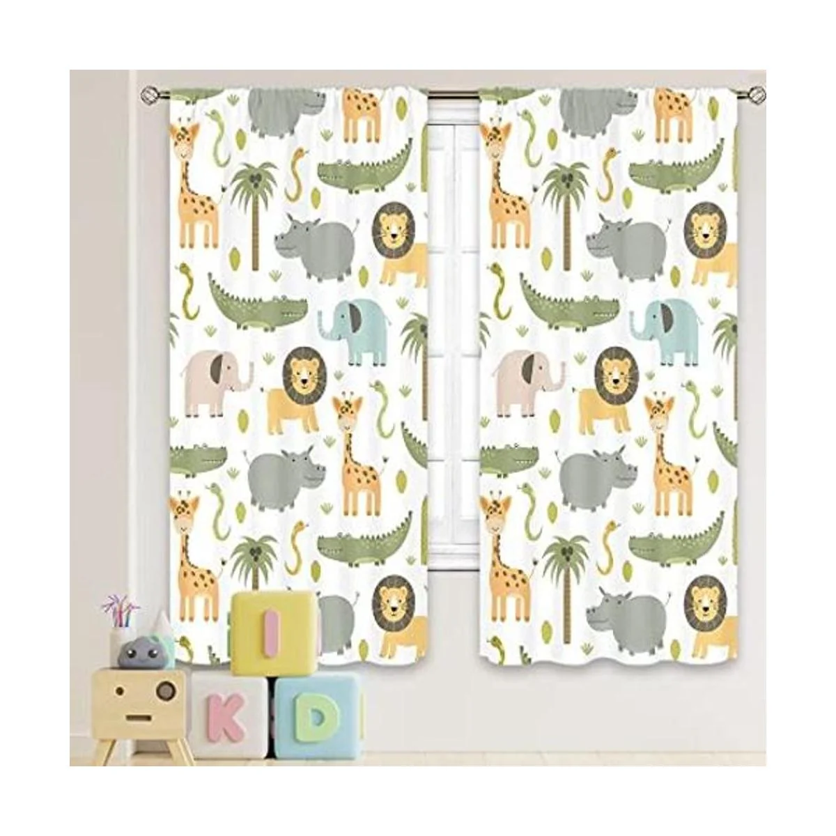 Meshelly Cortinas de animales de safari para guardería, 42 pulgadas de ancho x 63 pulgadas de alto, bolsillo para barra, para bebé, niños, bosque, selva, bosque, león, elefante, cortinas para sala de estar, dormitorio, cortinas de ventana de tela, 2 paneles