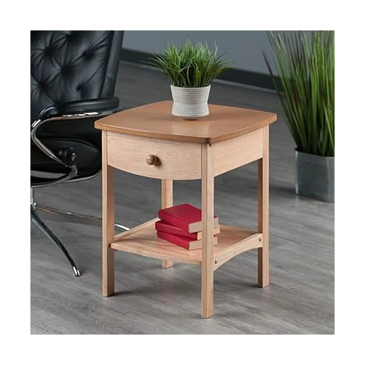 Mesita de noche Winsome Wood con cajón y estante, Madera, Natural