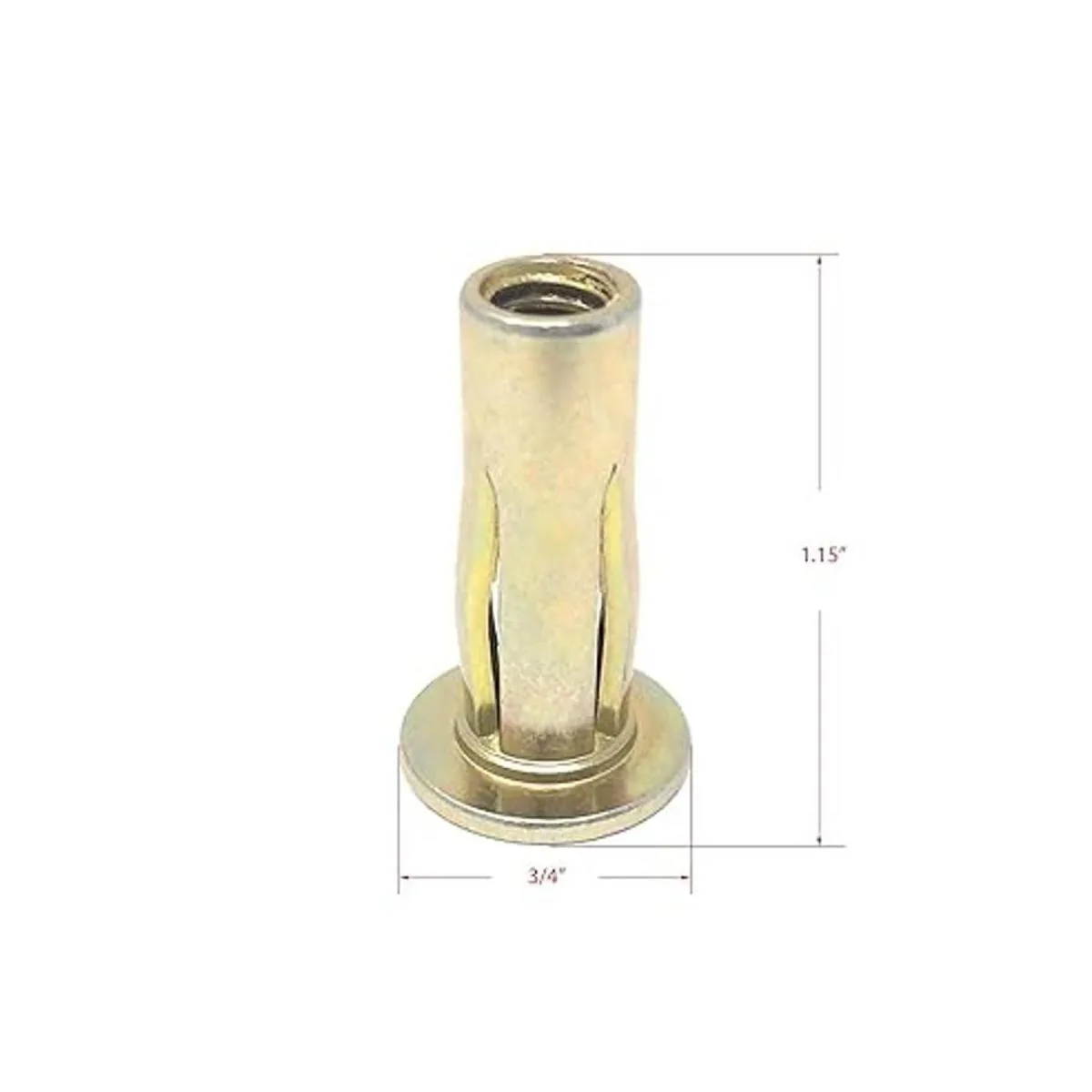 Metal Magery Mango de acero preperforado roscado, tuerca de remache de agarre múltiple 51618 x .020.280, acabado de zinc dorado paquete de 25