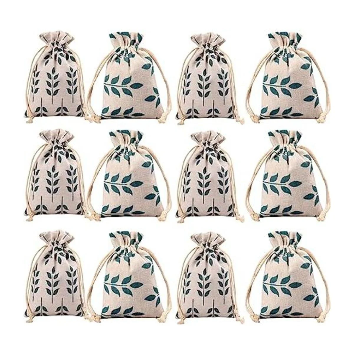 MetaU Burlap Bags With Drawstring Storage Bag Sachets Bag Gift Pouch For Party Wedding12pcs 1317cm5.26.8 inch, leaf