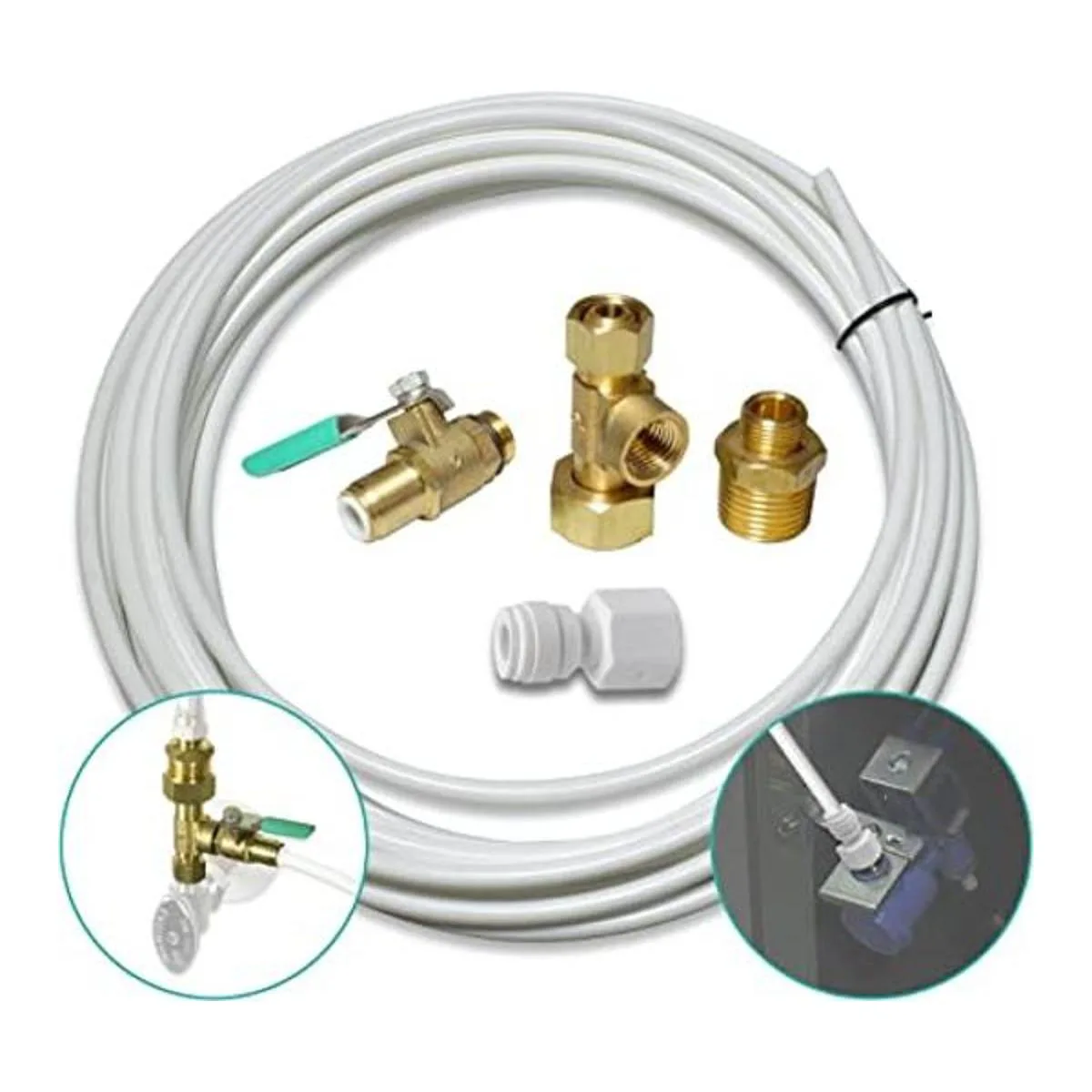Metpure Kit de instalación de nevera para máquina de hielo, tubo de 25 pies para línea de agua de electrodomésticos con conexión en T y válvula para una instalación rápida, accesorios de 14 pulgadas para agua potable