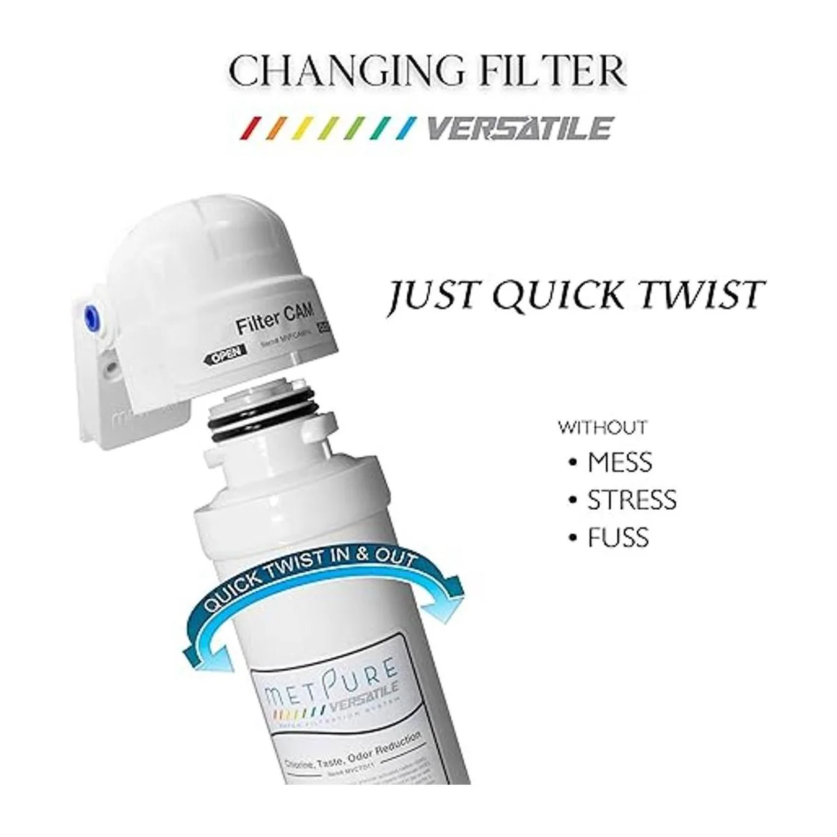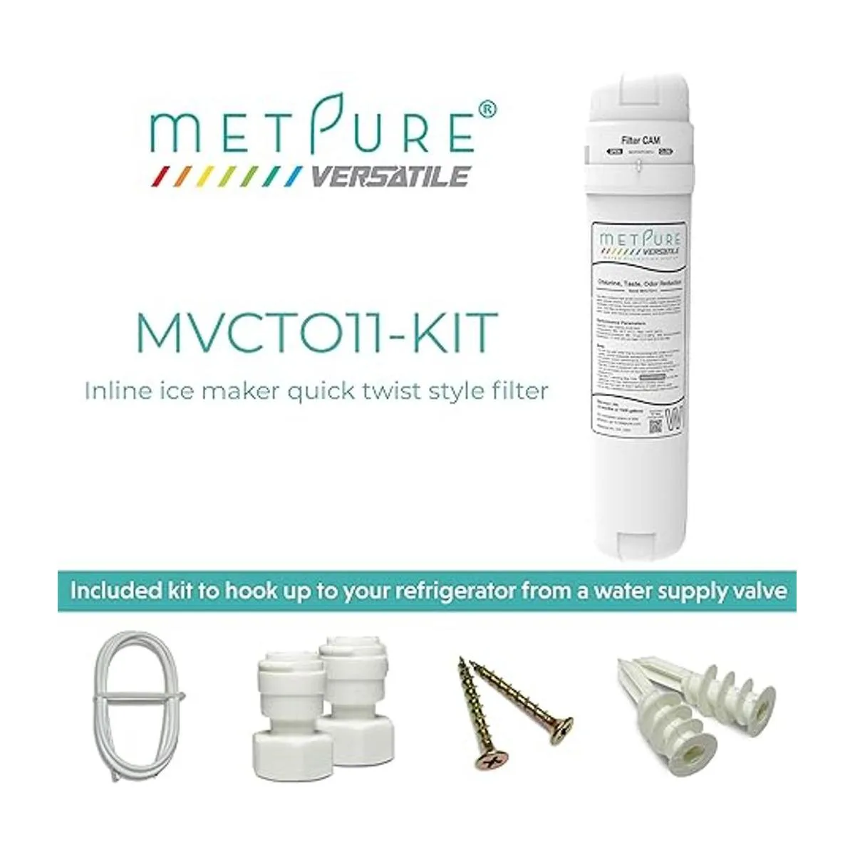 Metpure MVCTO11KIT Filtro de agua de giro rápido versátil de 14 pulgadas para refrigerador, máquina de hielo, cafetera, reduce el mal gusto, olor, cloro en agua potable. Kit completo.