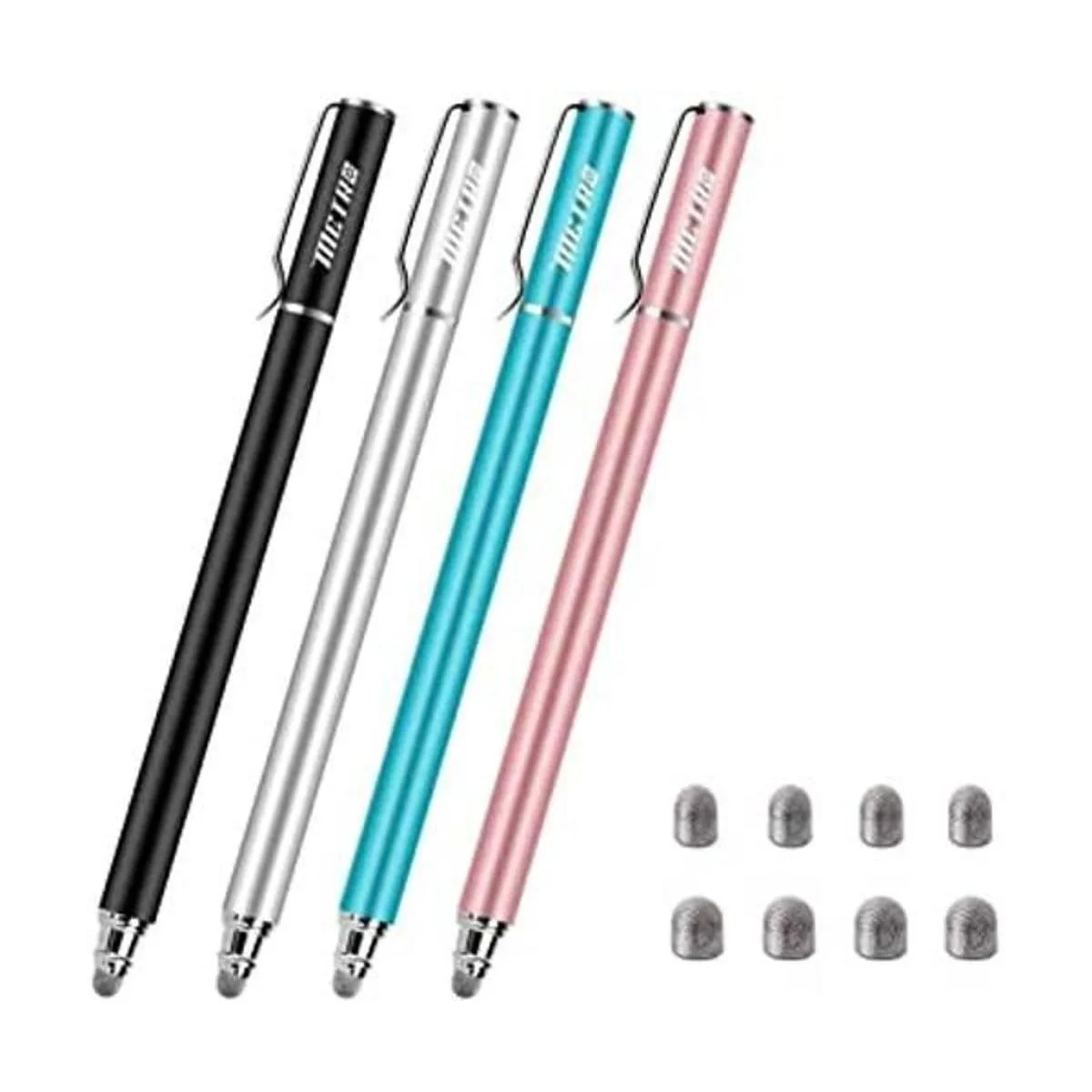 METRO Lápices universales para pantallas táctiles, puntas de fibra capacitiva de alta sensibilidad, bolígrafo de pantalla táctil 2 en 1 con 8 puntas extra reemplazables para iPad iPhone y todas las demás tabletas y teléfonos celulares