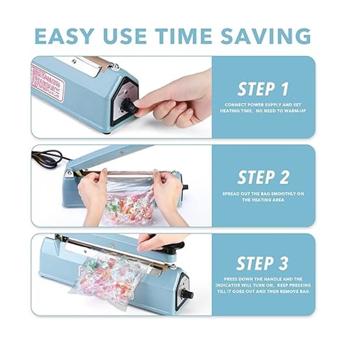 Durable and SturdyOur impulse sealer made with high quality iron material, pure copper coil, reduces heat and work loss, ensures double longer working life.