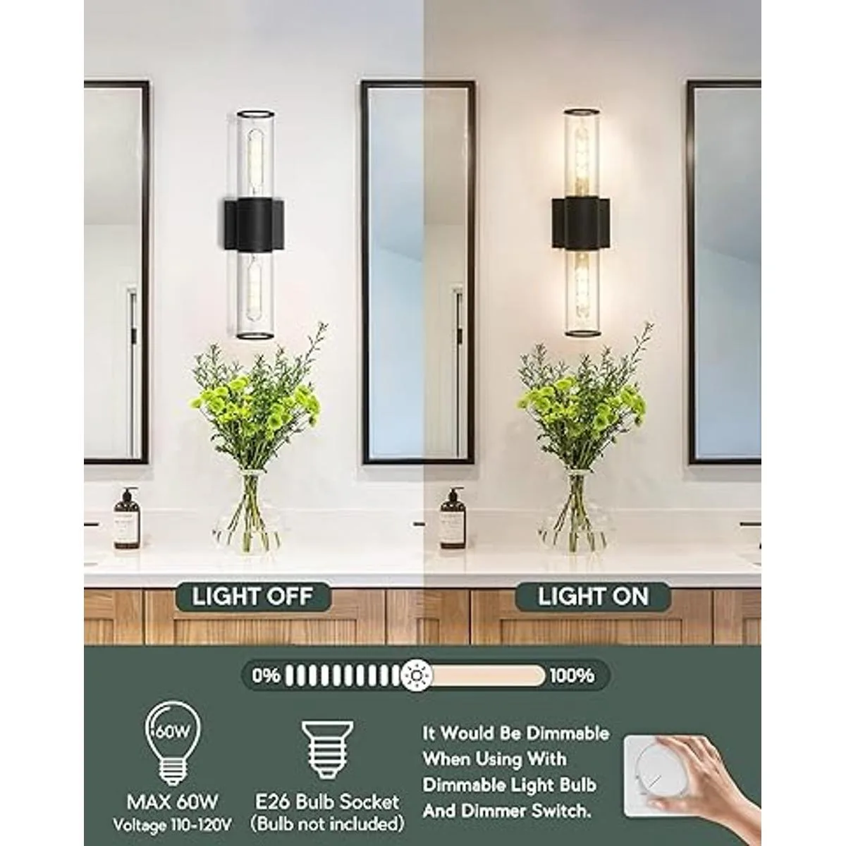 Diseño inspirado: los apliques de pared de baño de 2 luces están hechos de metal resistente en el acabado negro mate y vidrio transparente que crea un aspecto antiguo y minimalista. La lámpara de pared traerá más exquisita y lujosa para la iluminación de tu hogar.