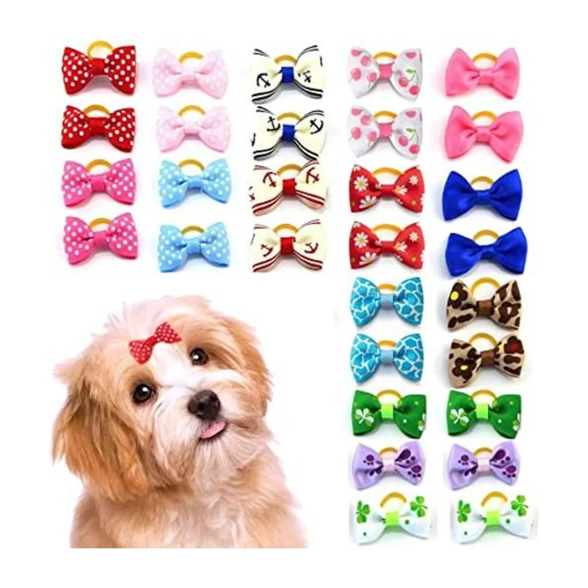 Mewtogo 30 unids15 pares de lazos de pelo de perro con bandas de goma, accesorios para el pelo de mascotas para niñas cachorros pequeños banda de goma
