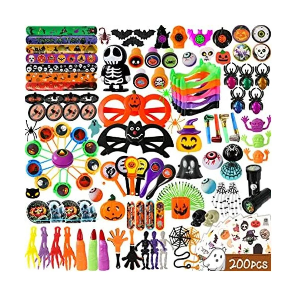 MGparty 200 recuerdos de fiesta de Halloween a granel para niños y adultos, caja de premios de fiesta de Halloween, surtido de juguetes, premios de juego de carnaval, juguetes de caja del tesoro para aula, regalos de cumpleaños, juguetes antiestrés