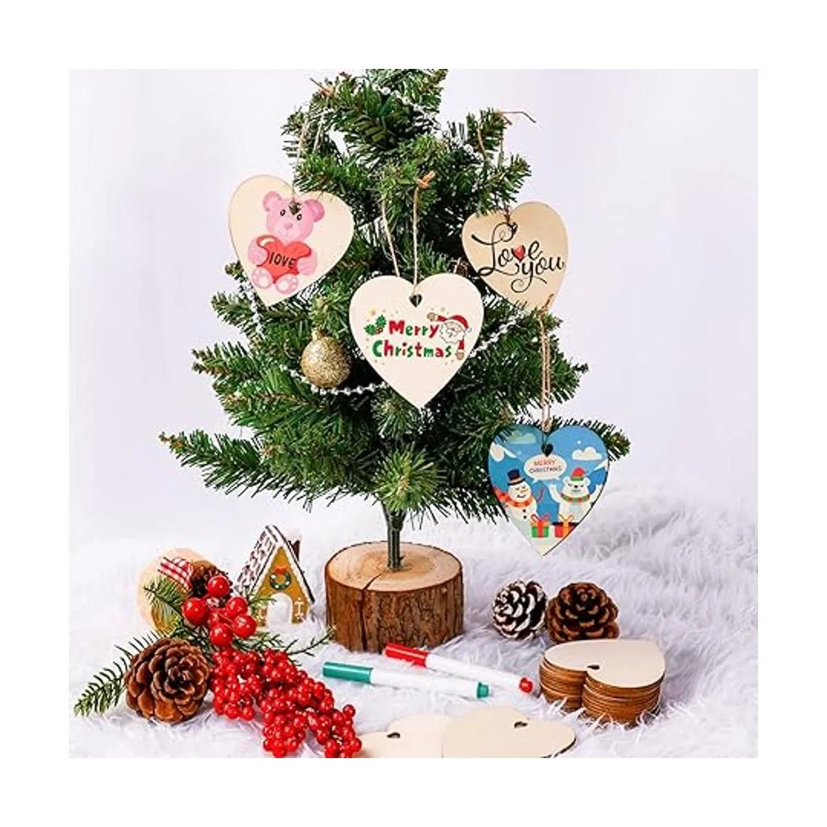 El paquete incluye: el paquete viene con 60 adornos colgantes de madera y 1 juego de cuerdas a juego. Cada rebanada de madera de corazón mide aproximadamente 3 pulgadas de altura y el ancho es de aprox.