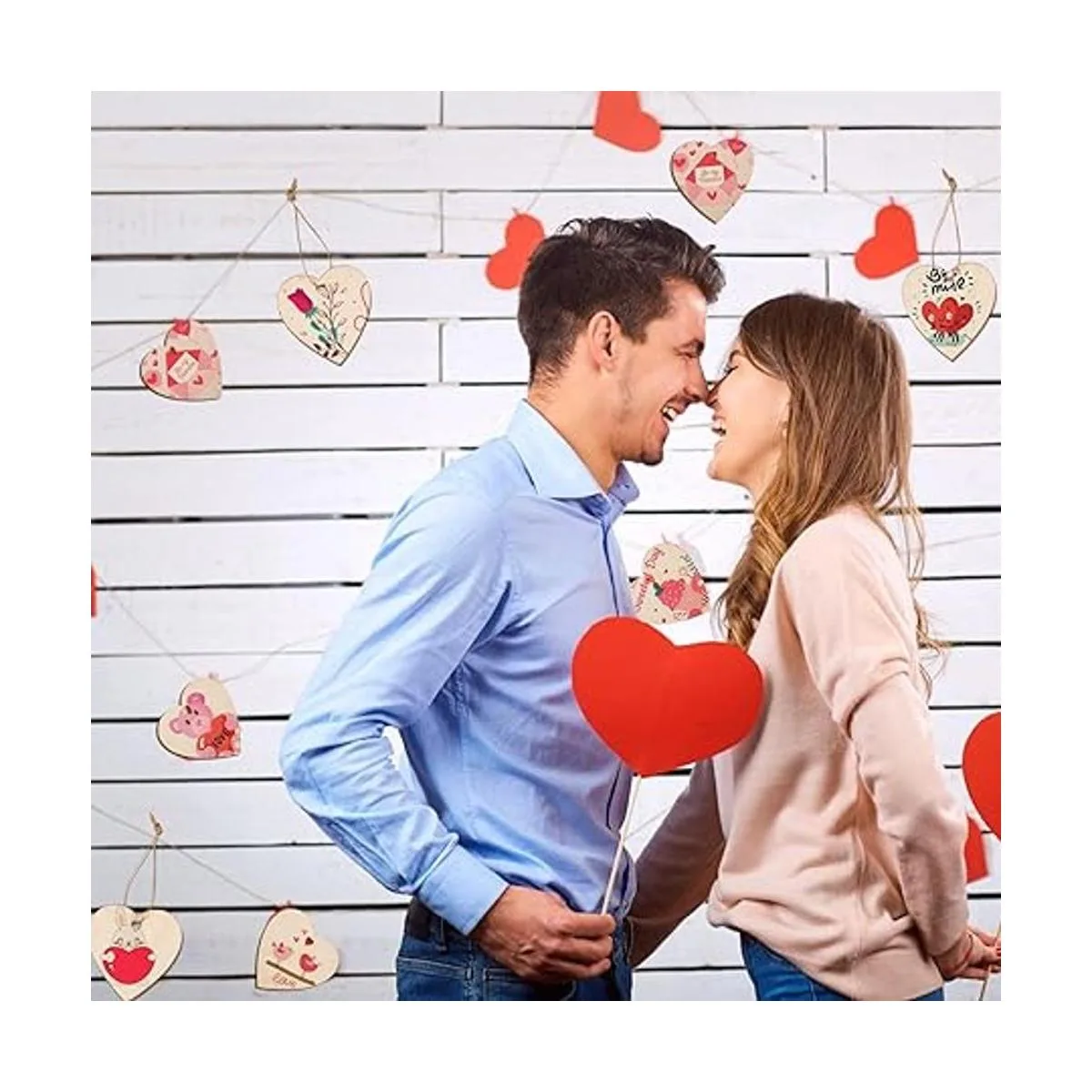 Fácil de usar: fácil de transportar y almacenar; mientras tanto, cada letrero de madera de corazón está diseñado con un agujero para que la cuerda pase fácilmente. Puedes colgarlos fácilmente en cualquier lugar o utilizarlos como marcadores, etiquetas, coleccionables y mucho más. El efecto es excelente, lo que te trae un día de San Valentín diferente