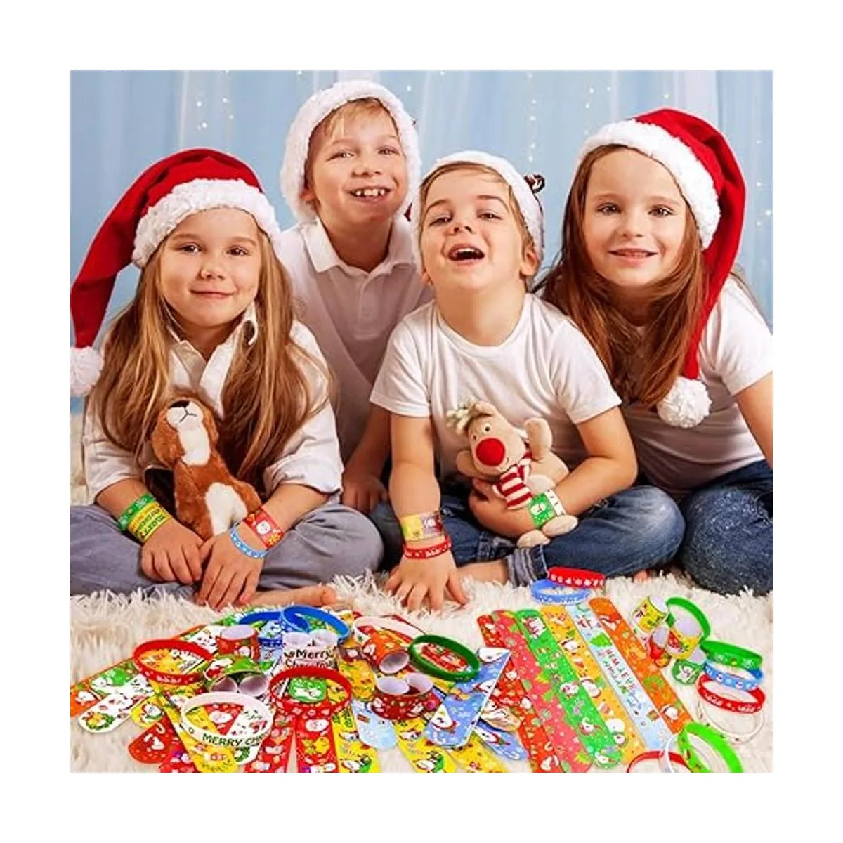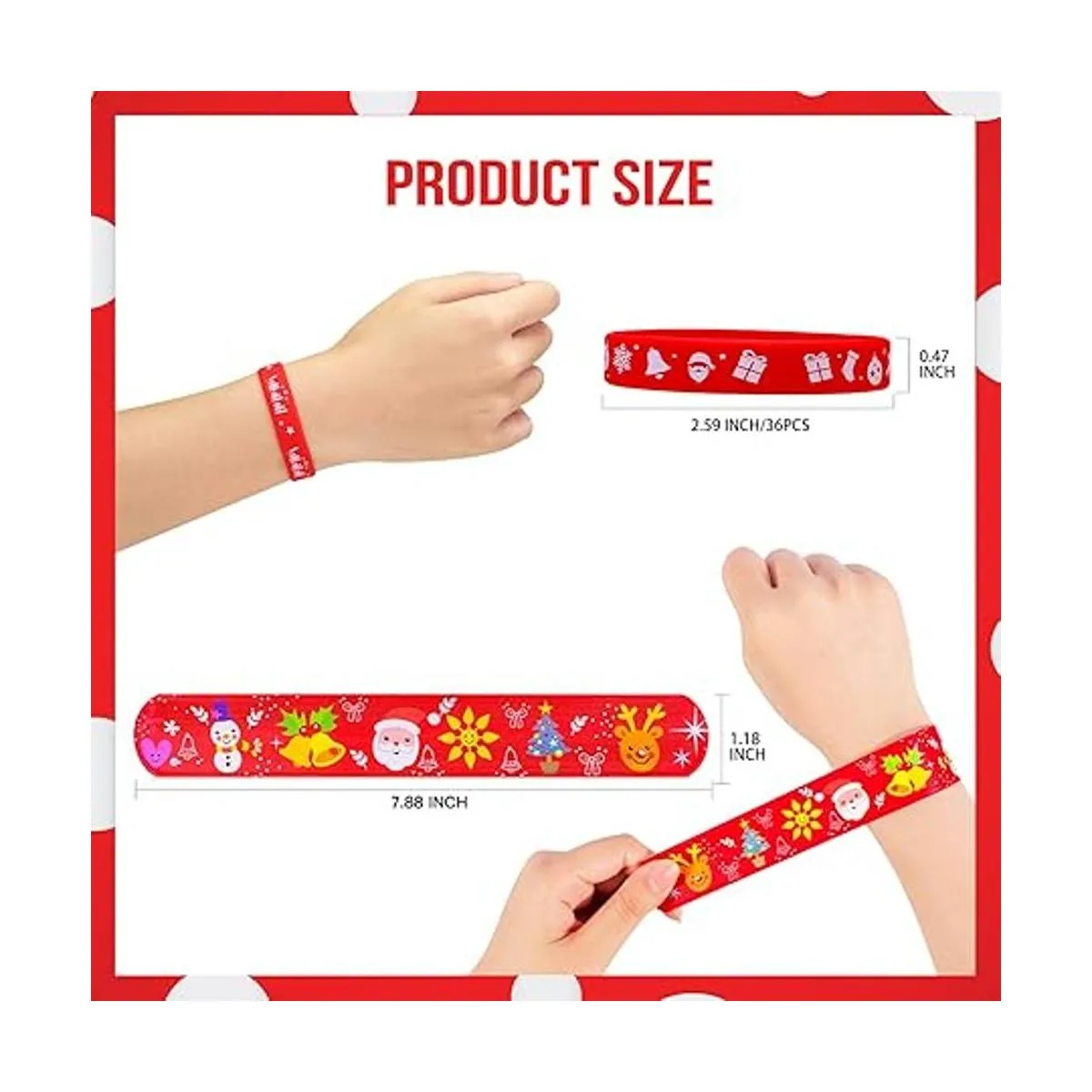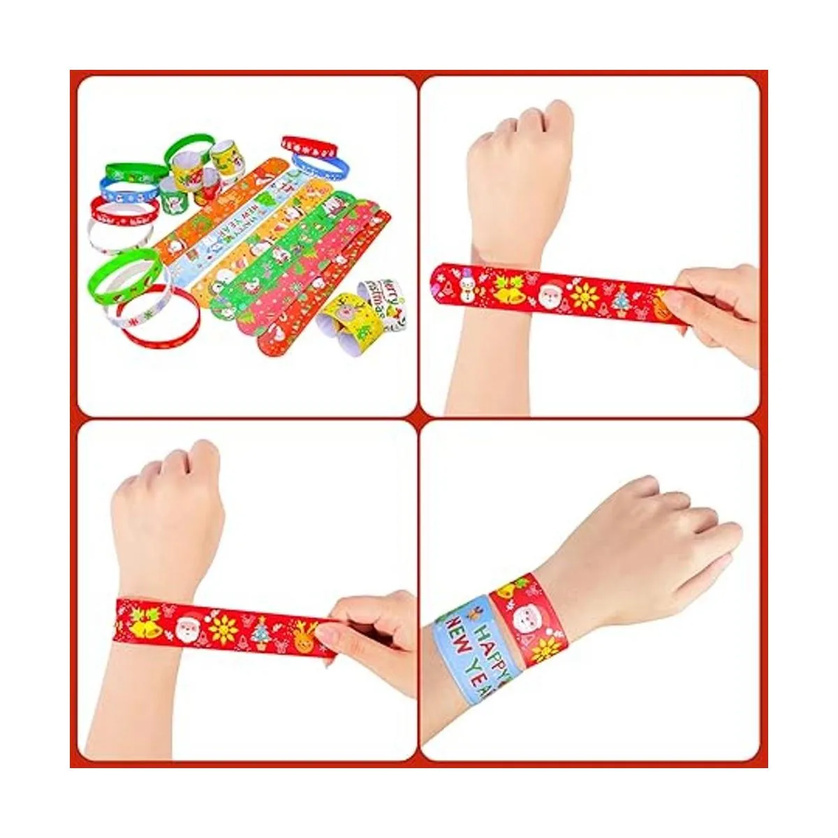 Adecuado para niños y adultos: cada pulsera mide aproximadamente 7.88 pulgadas, las pulseras de silicona miden aproximadamente 2.59 pulgadas. Gira fácilmente tu muñeca con una bofetada. Grandes regalos de fiesta de Navidad para niños.