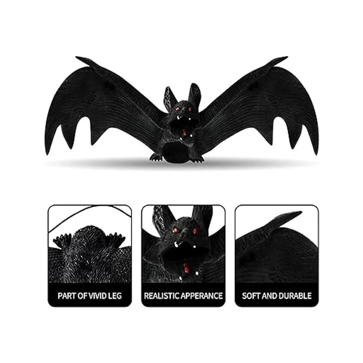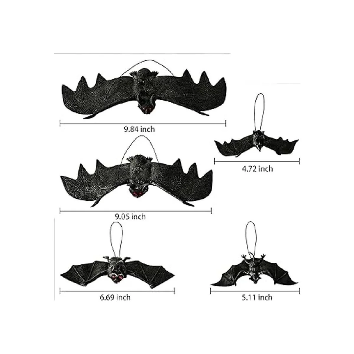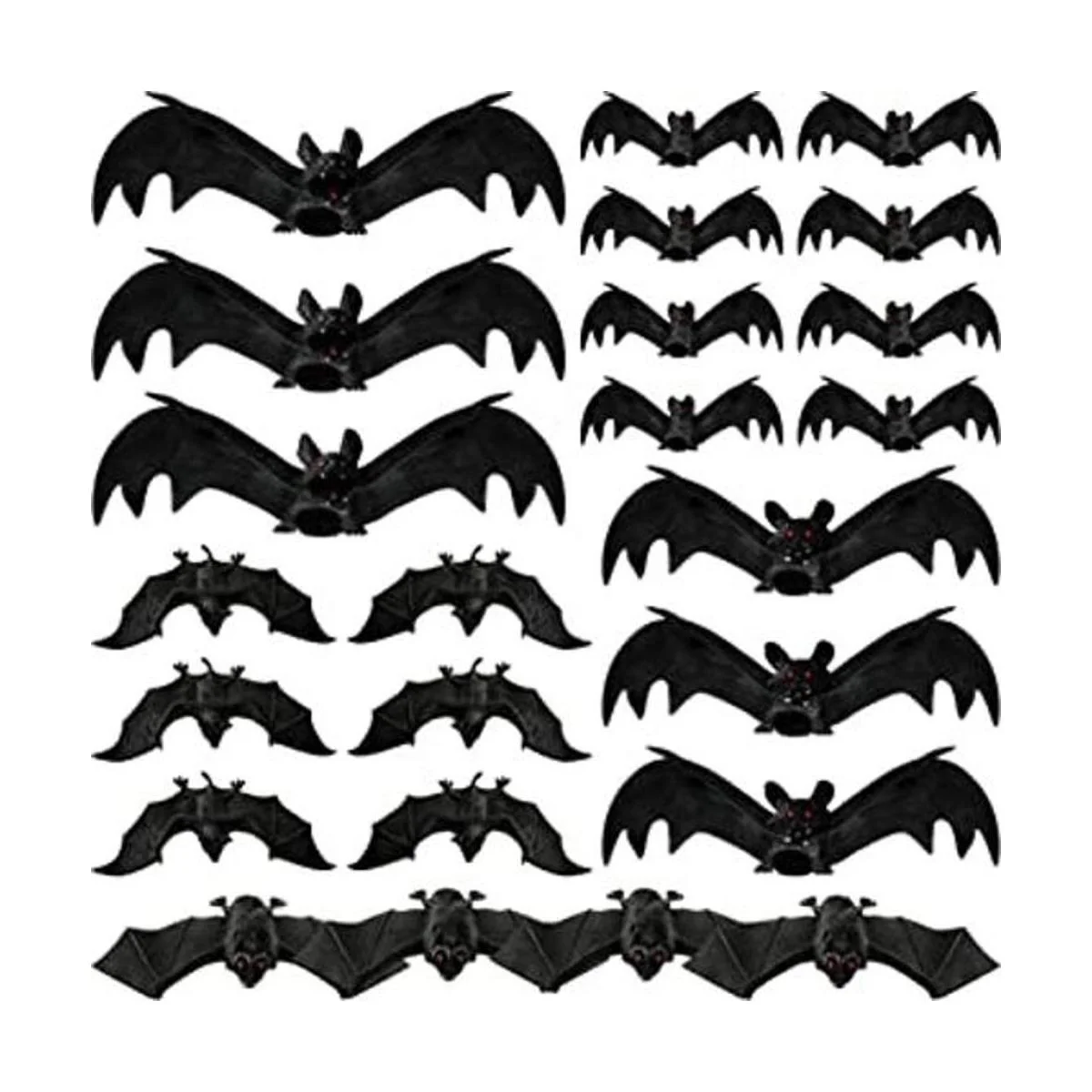 MGparty Murciélagos colgantes de Halloween, 24 piezas realistas de goma aterradora para Halloween, exteriores, patio, interior, hogar, ventana, puerta, decoración de pared de fiesta de Halloween con 5 tamaños