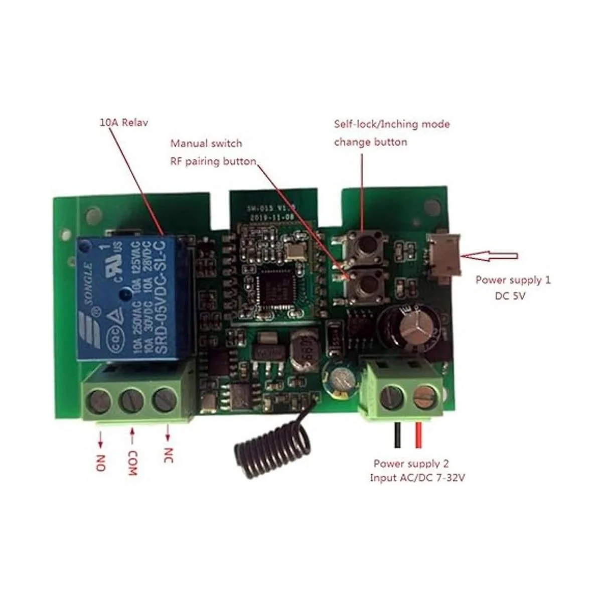 Voltaje de trabajo CC 5 V o CC 7 32 V, acepta energía a través de un micro USB o terminales estándar. La alimentación no pasa a través del circuito del relé. Es un relé momentáneo aislado de contacto seco ZigBee IOT con controlador de interruptor de encendido/apagado Zigbee de bajo voltaje de contacto limpio, funciona como botón zigbee para abrir puertas de garaje inteligente con modo momentáneo
