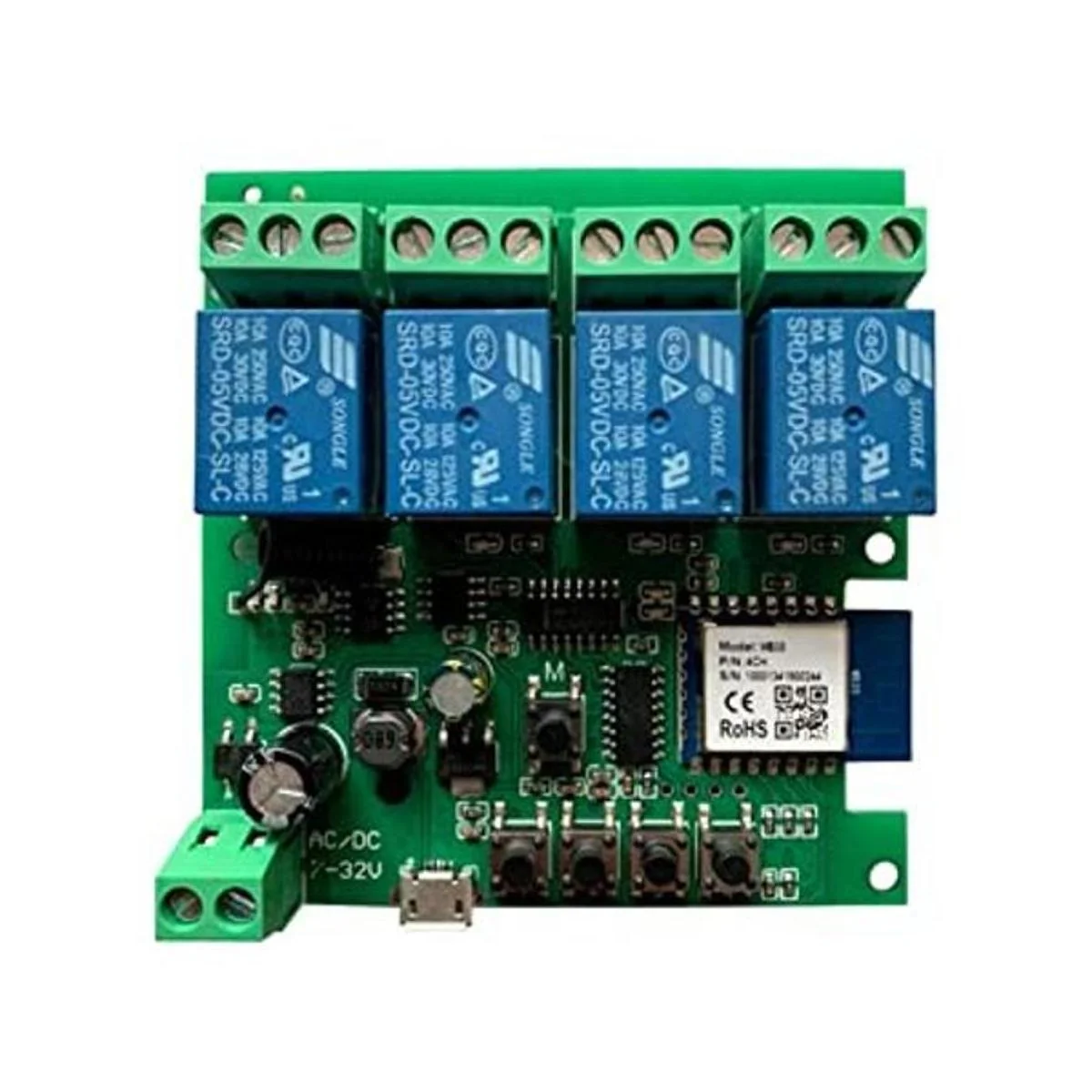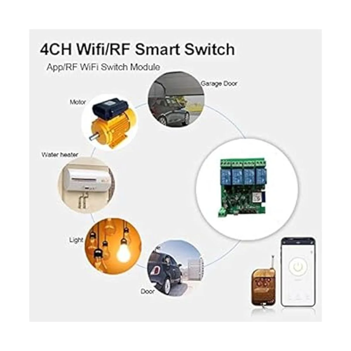 Relé WiFi Bluetooth, Smart Life Tuya App WiFi remoto y 433 MHz RF y Bluetooth remoto 4 canales. Fácil de configurar a la aplicación Smart Life, el voltaje de trabajo es DC 5 V o CA/CC 732 V. Una vez configurado con la aplicación Smart Life, puedes utilizar control remoto Bluetooth o control RF de 433 MHz cuando pierdes conexión WIFI