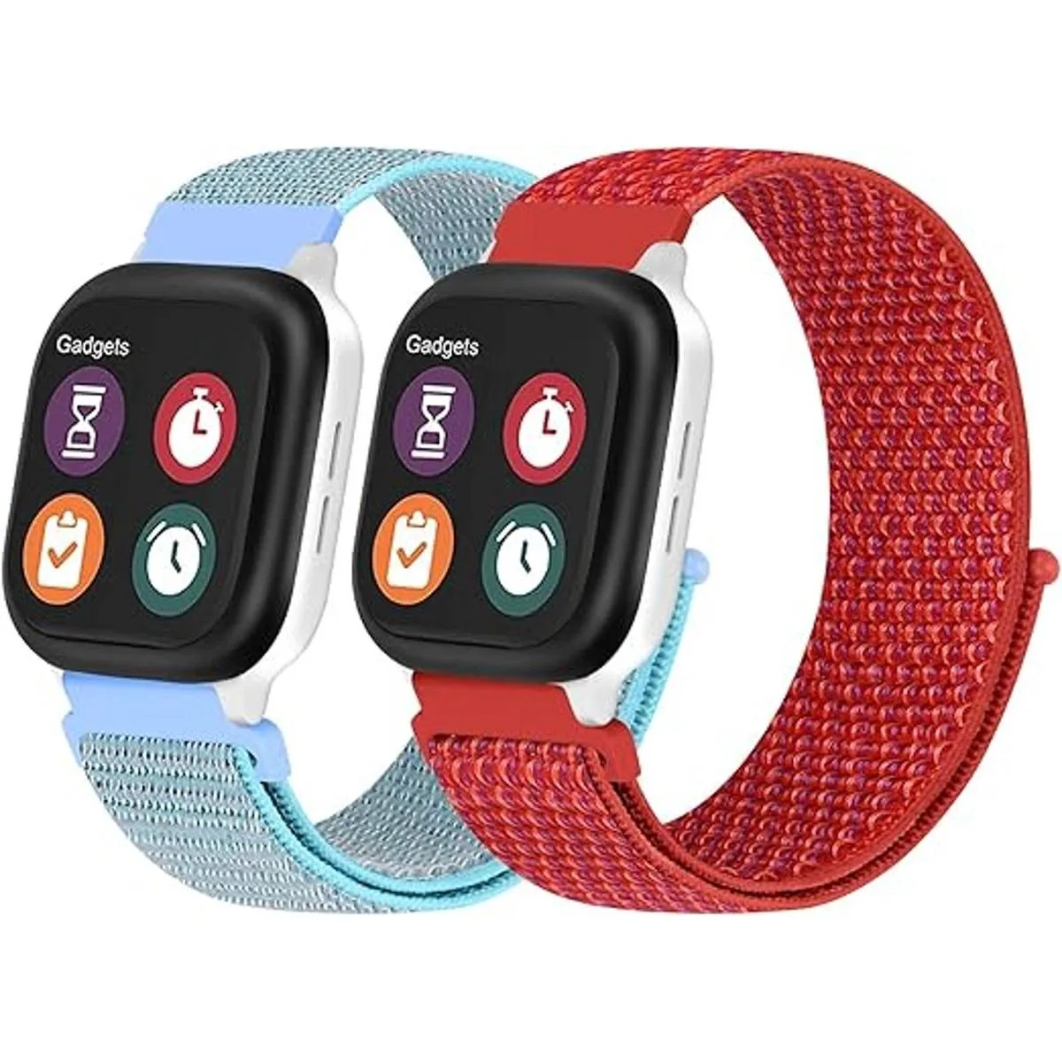 MHunter Paquete de 2 correas de repuesto para reloj para niños compatibles con Gizmo Watch de 0.787 in Sport Hook Loop Correa de reloj de nailon compatible con Verizon Gizmo Watch 2 Gizmo Watch 1 RojoAzul