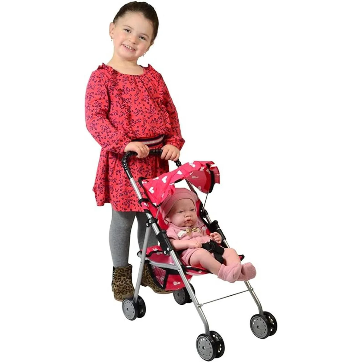 Mi primer carriola para muñecas con cesta y diseño de corazón plegable carriola para muñecas, color rosa de The New York Doll Collection