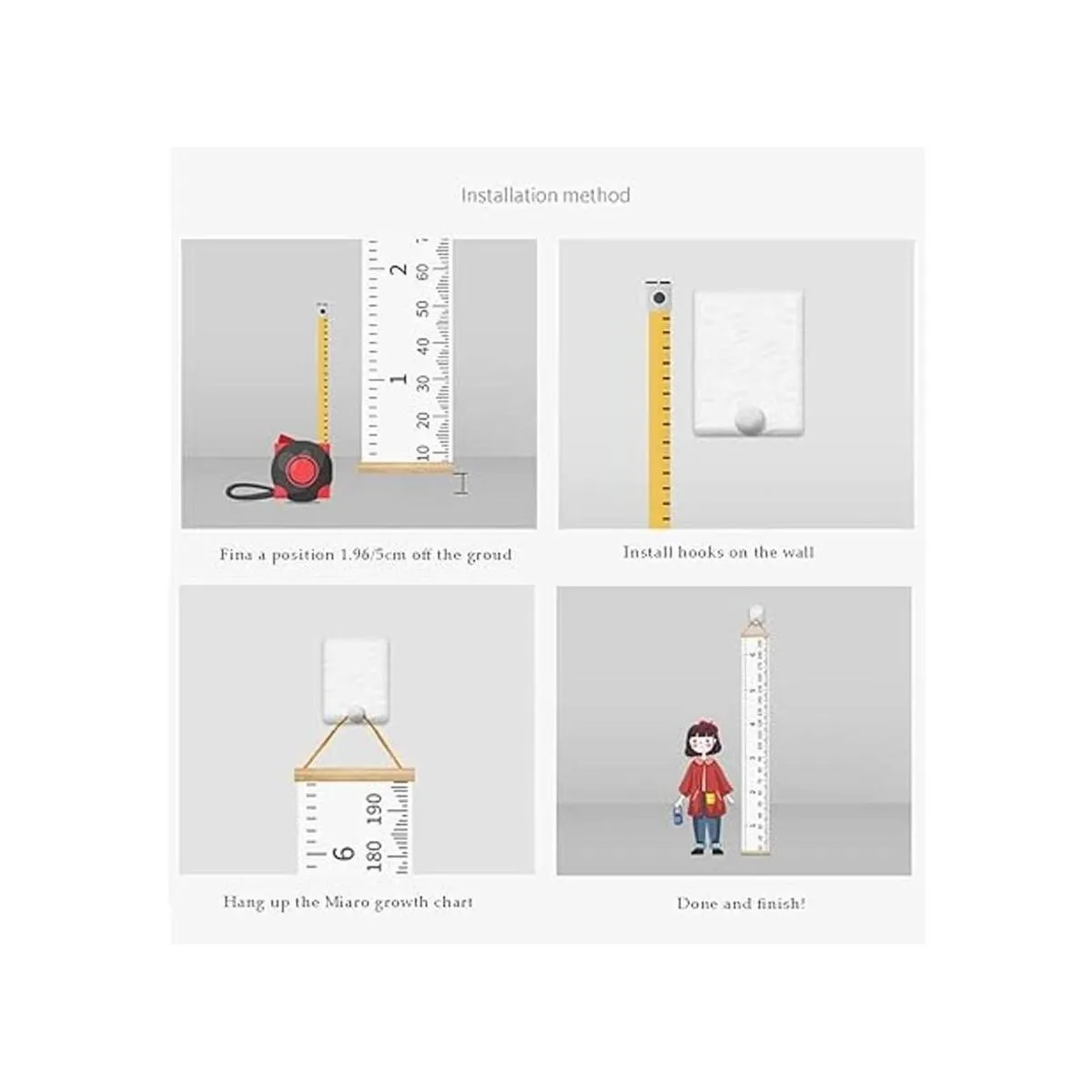 Miaro Tabla de crecimiento para niños, tela con marco de madera, regla de medición de altura de bebé a adulto, para decoración de habitación de niños, 7.9 x 79 pulgadas