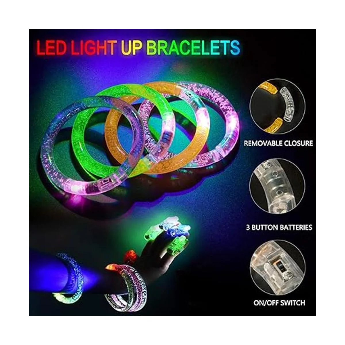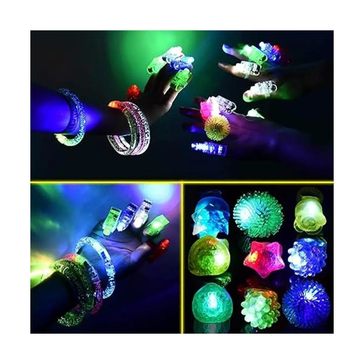 Paquetes competitivos de 67 piezas que incluyen 40 luces para dedos, 10 anillos irregulares, 5 vasos, 4 pulseras, 4 luces para el pelo y 4 collares. Son tan brillantes y coloridos que crean un mundo maravilloso. Vienen en una hermosa caja que los hace perfectos para regalo.