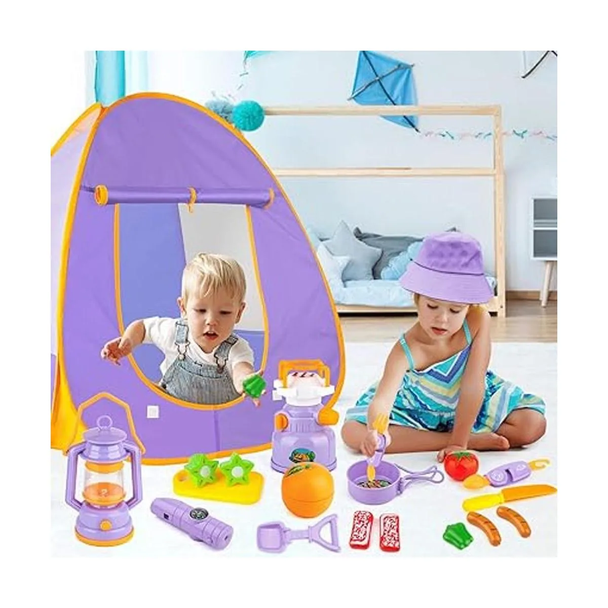 Aprendizaje jugando: los niños juegan los juguetes de camping con familiares y amigos juntos, lo que promoverá la relación o amistad de padres e hijos. Esto también ayuda a mejorar la comunicación, la cooperación, la creatividad y las habilidades motoras finas de los niños. Grandes juguetes de simulación para niños pequeños, preescolares, niños, niñas, niños mayores de 3 años.