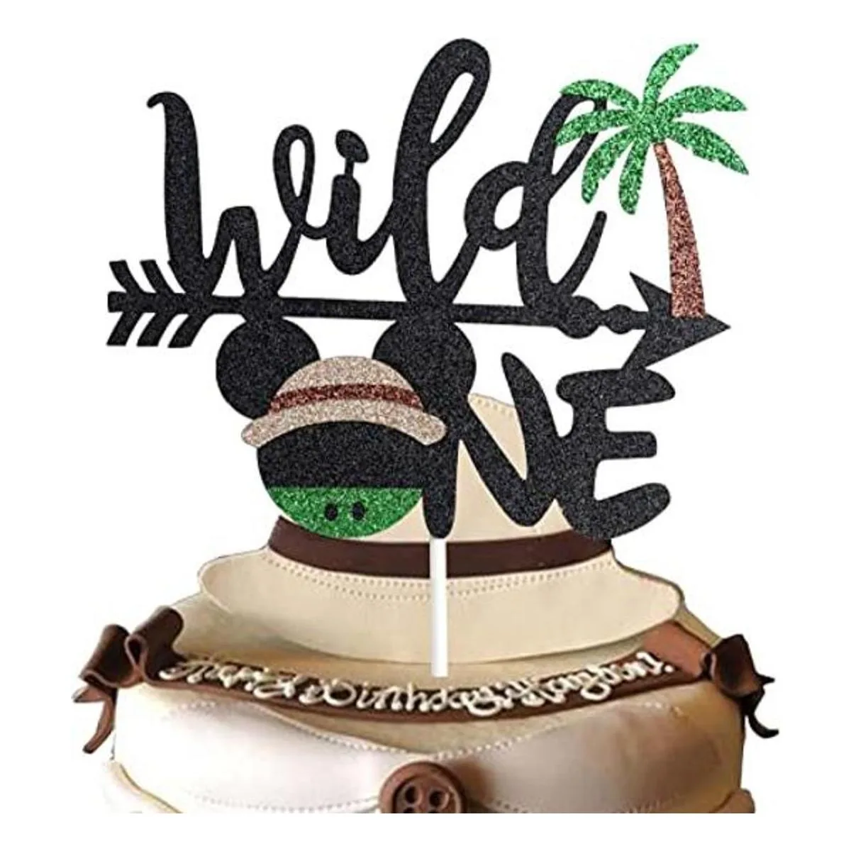 Paquete: 1 decoración para tartas con purpurina con temática de safari de Mickey WildONE.
