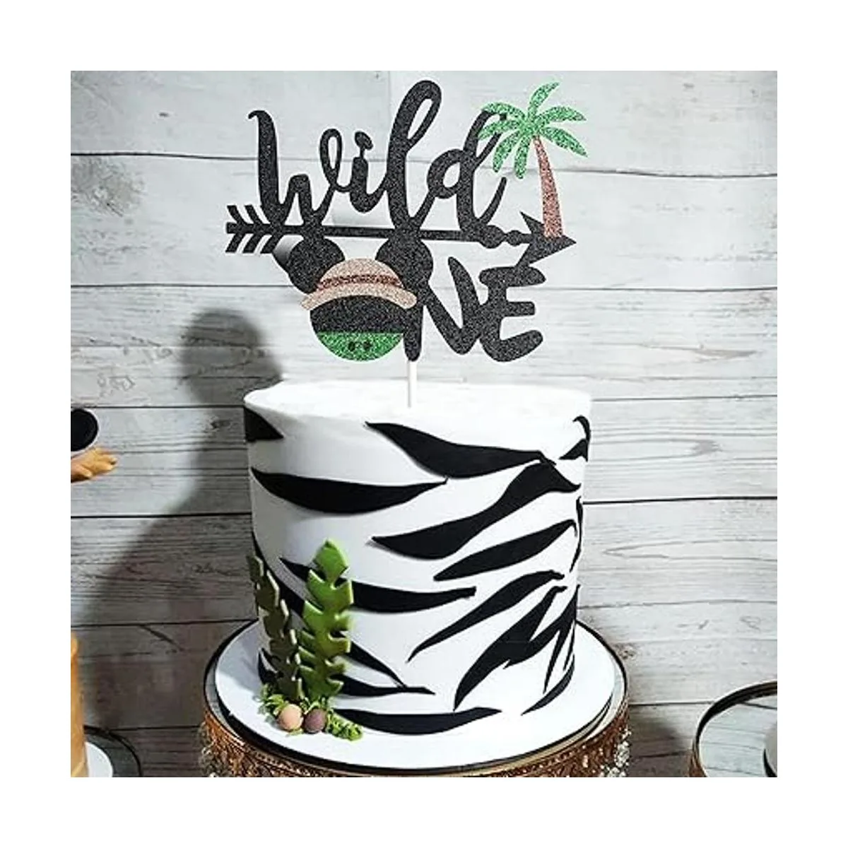 Mickey Safari Decoración de fiesta de primer cumpleaños, decoración de Mickey Wild One Cake Topper Lets Go Wild Jungle Safari Party Cake Decor para bebé de un año, purpurina
